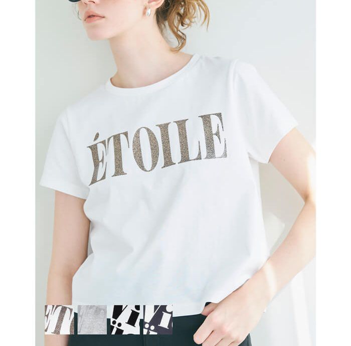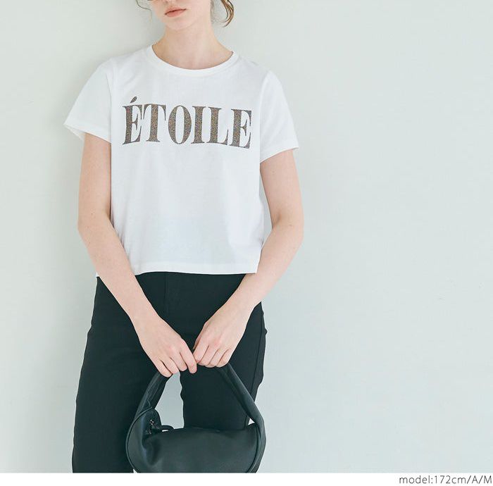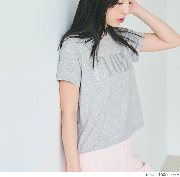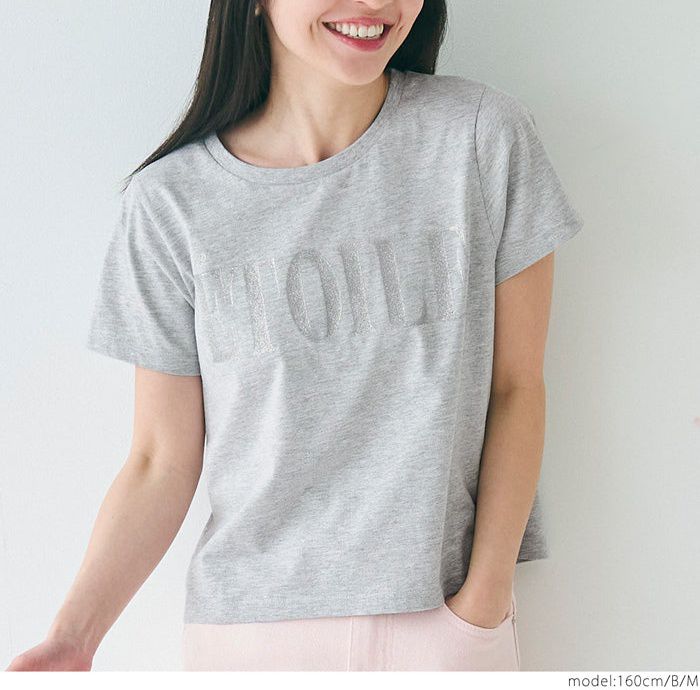 日本 COCA - [大人]英文字母休閒短袖T恤-金蔥-灰