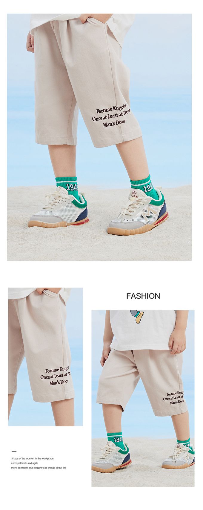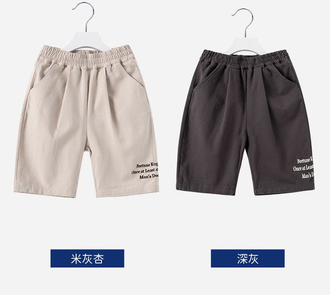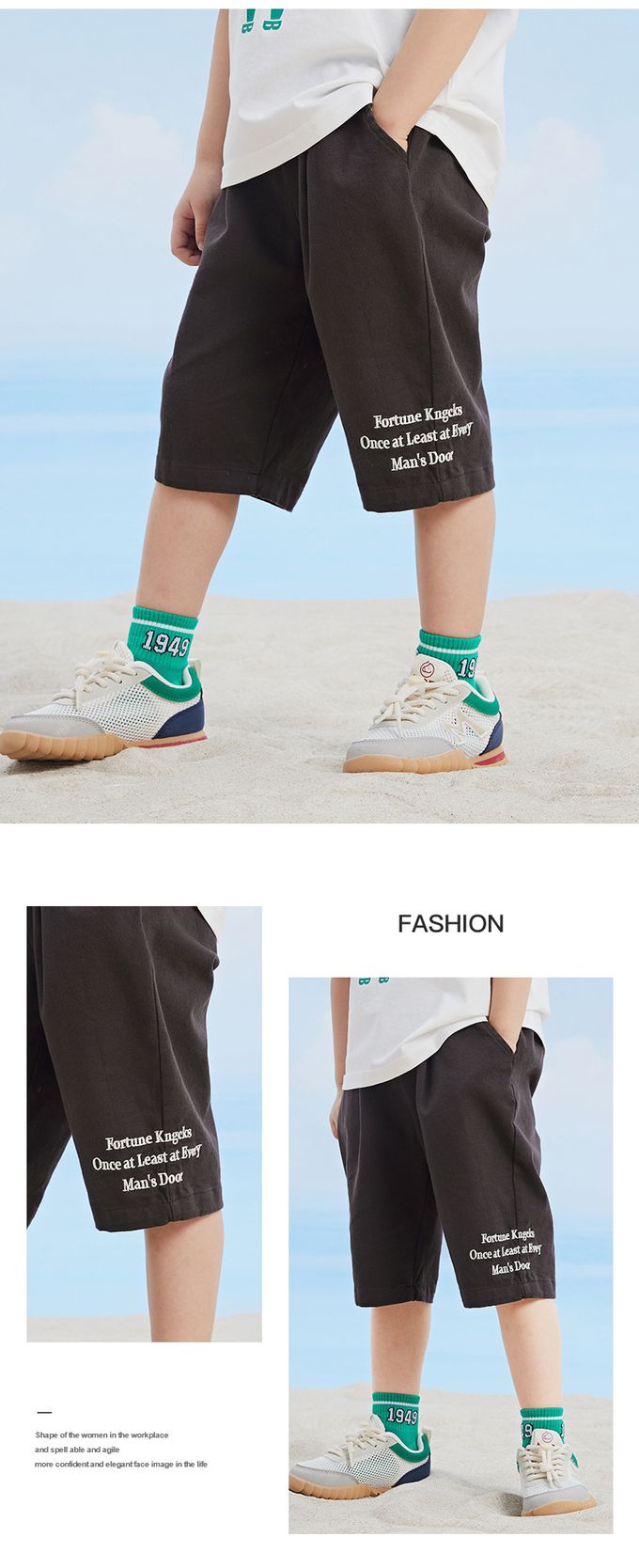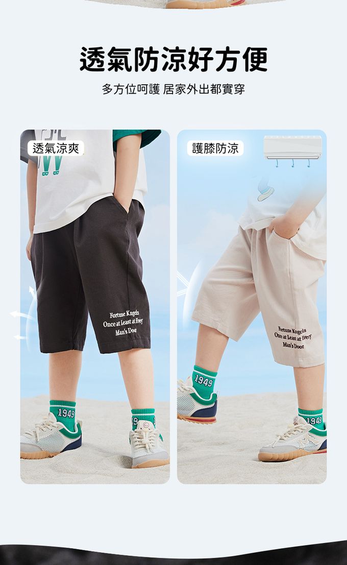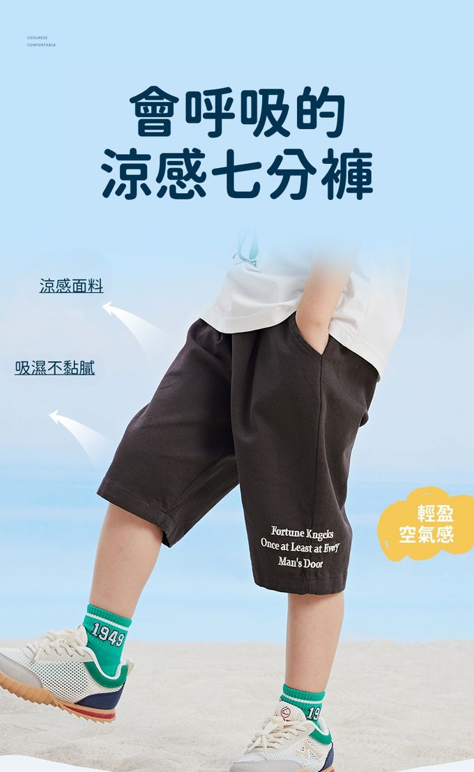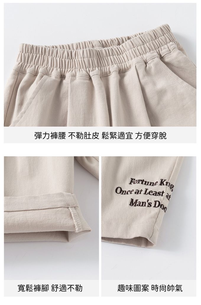 涼感透氣休閒七分褲-刺繡標語-深灰