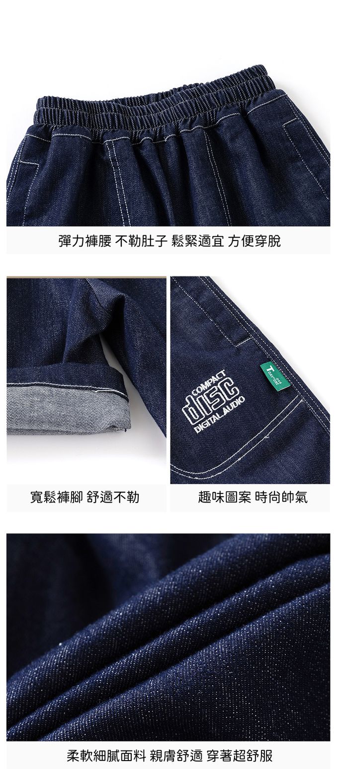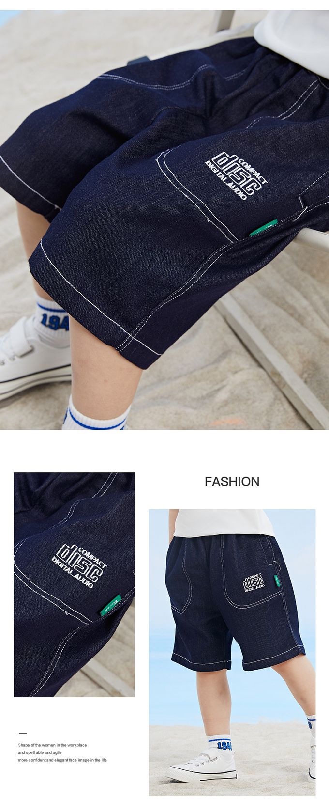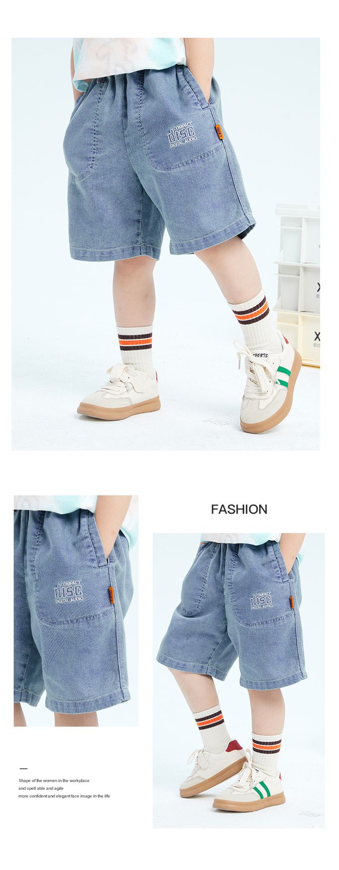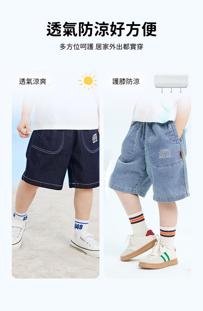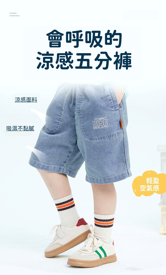 涼感透氣休閒五分牛仔褲-英文刺繡-淺藍