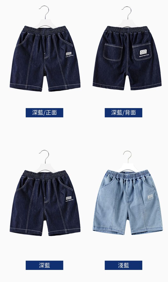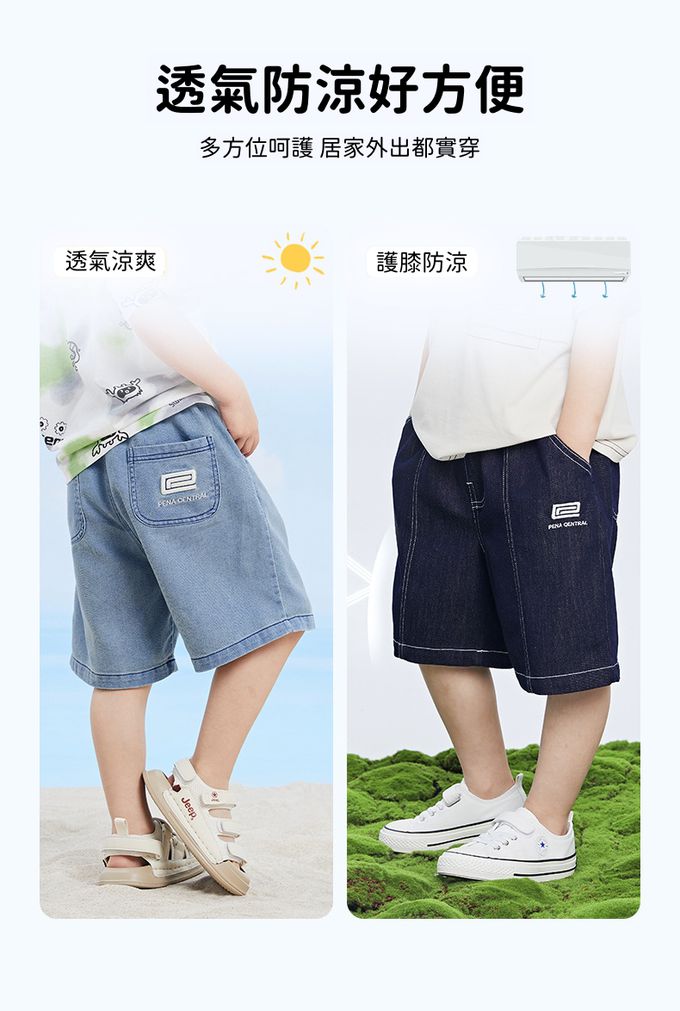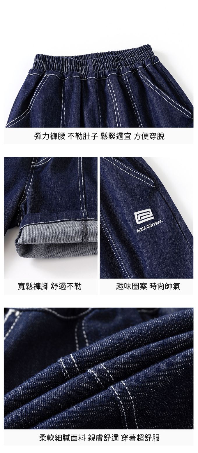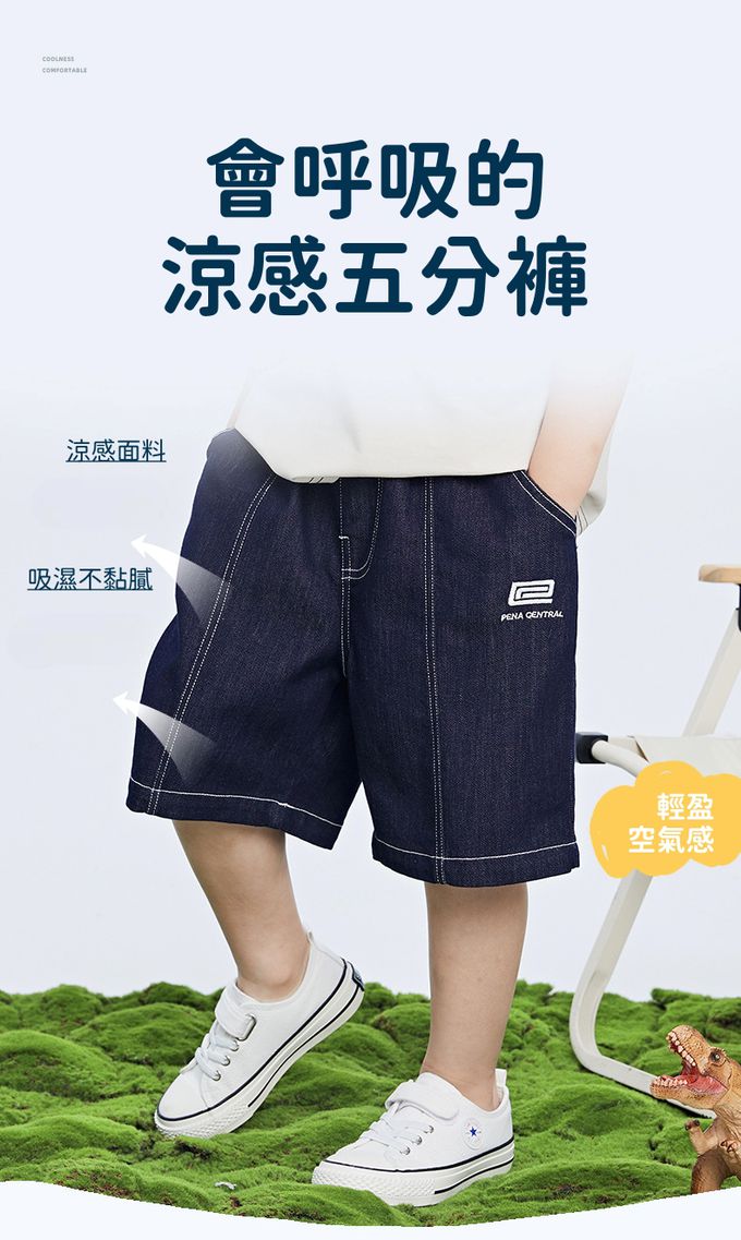 涼感透氣休閒五分牛仔褲-刺繡logo-淺藍