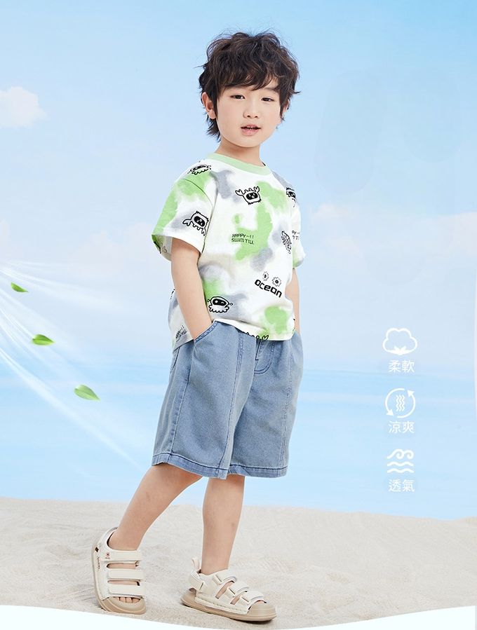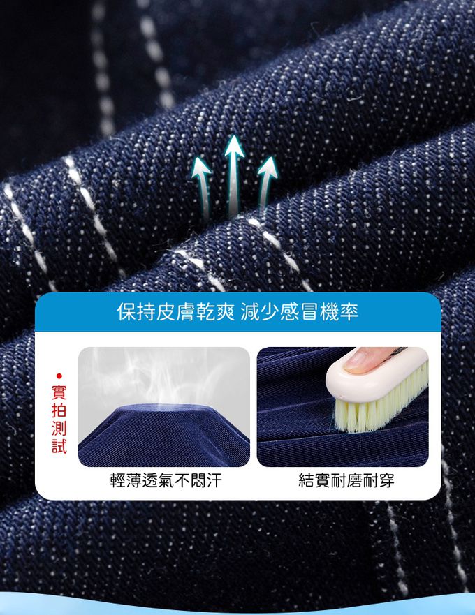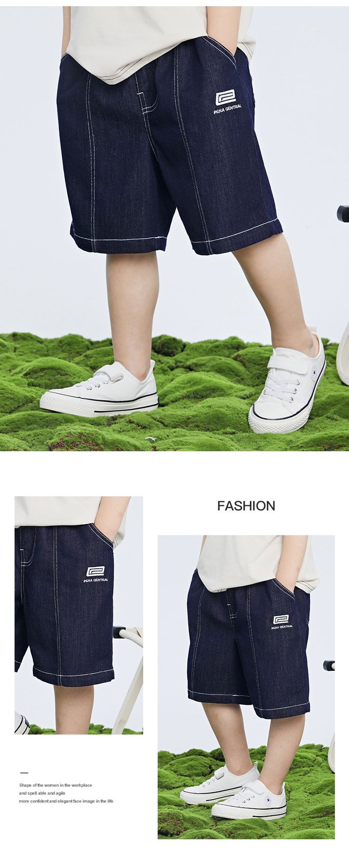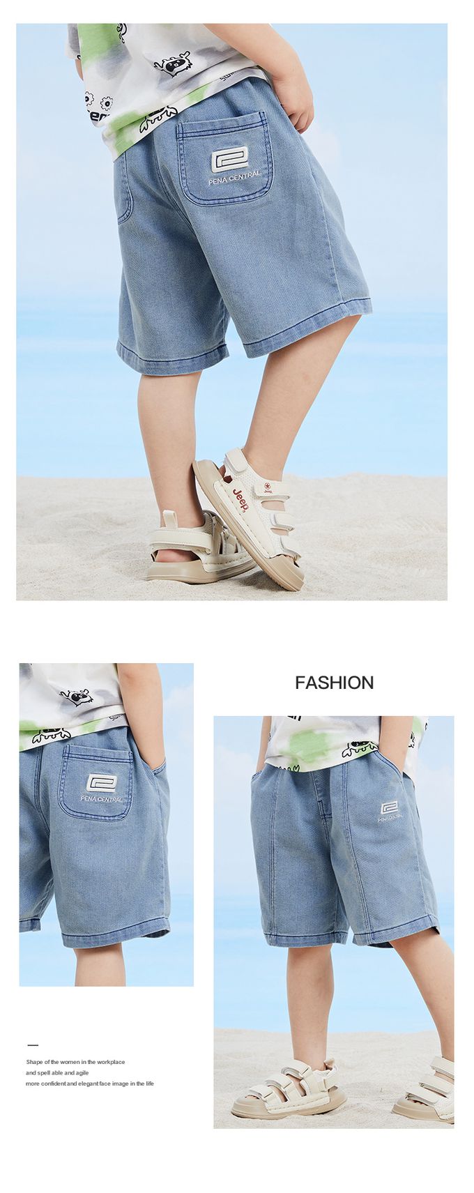 涼感透氣休閒五分牛仔褲-刺繡logo-淺藍