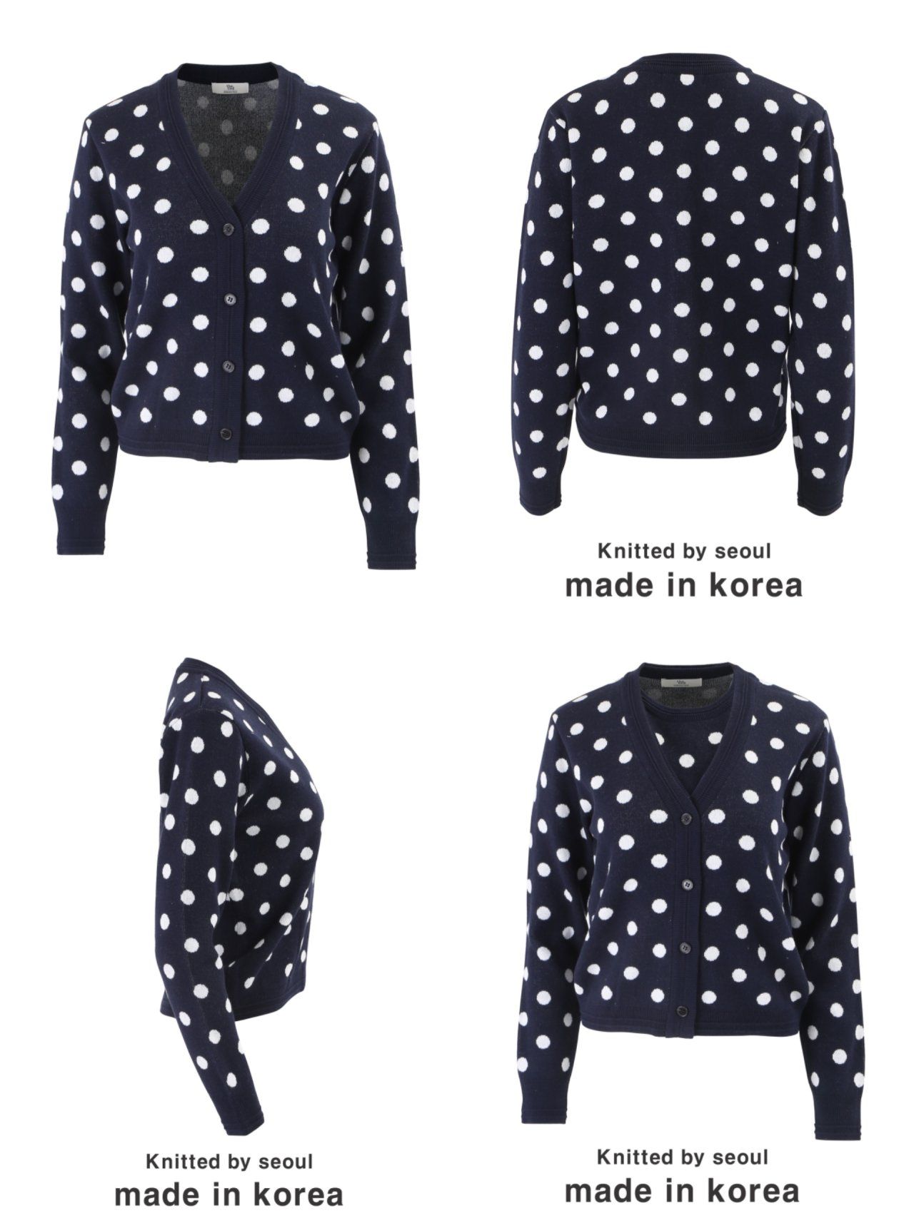 韓國女裝連線 - 韓製 經典點點V領針織外套
