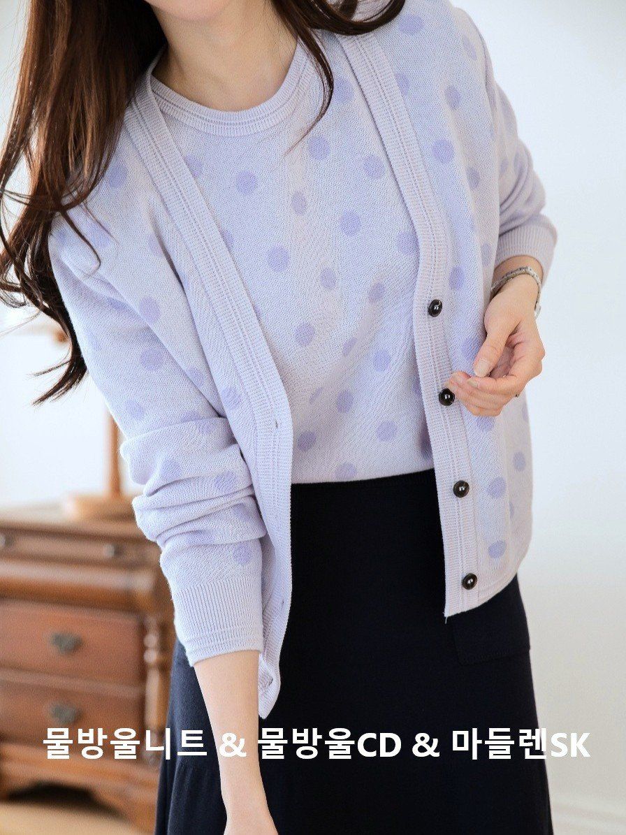 韓國女裝連線 - 韓製 經典點點V領針織外套-薰衣草紫 (FREE)