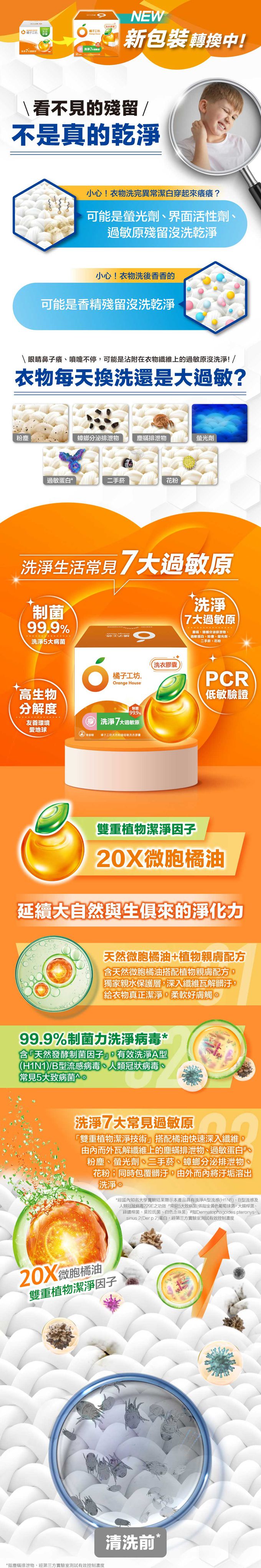 【橘子工坊】天然制菌洗衣膠囊-制菌低敏