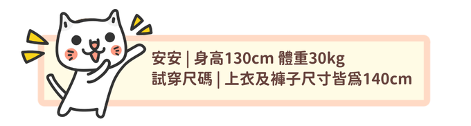 這款上衣袖口有貼心拇指洞設計,穿戴更服貼。看安安活潑地動來動去衣服也不會滑落。