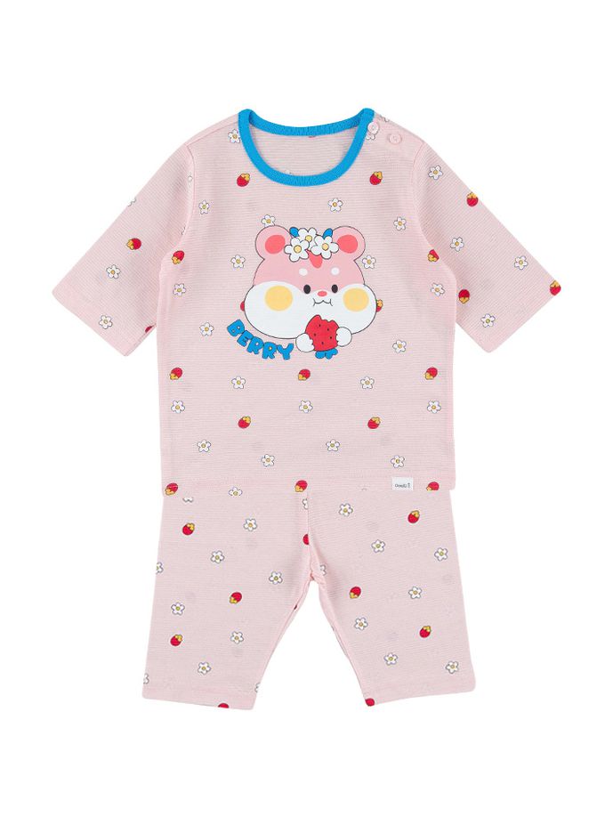 韓國 Cordi-i - 透氣提花棉七分袖家居服/睡衣-草莓松鼠-粉