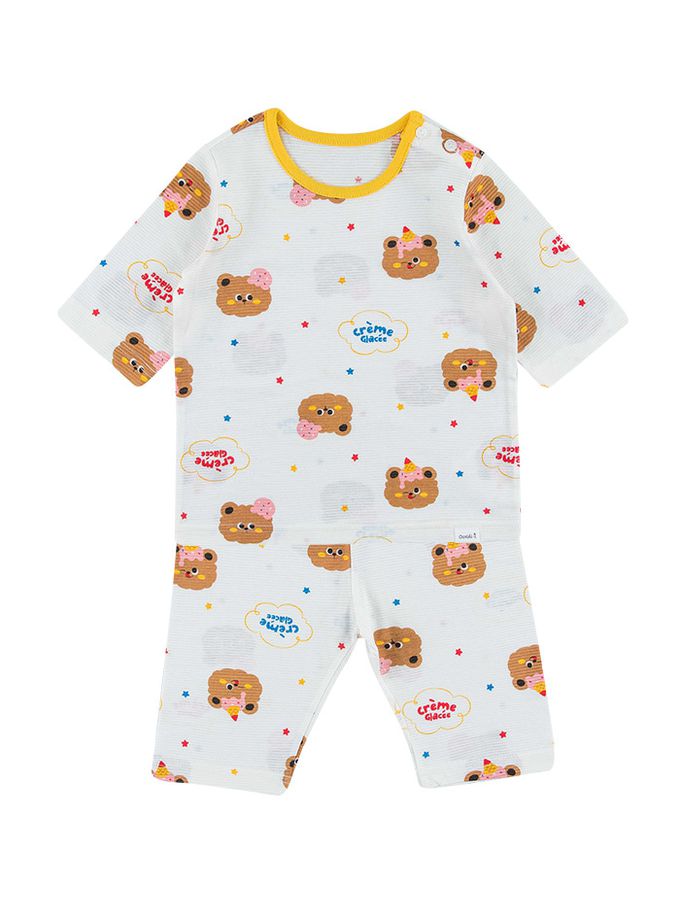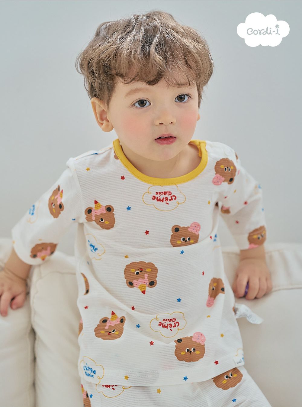 韓國 Cordi-i - 透氣提花棉七分袖家居服/睡衣-冰淇淋熊熊
