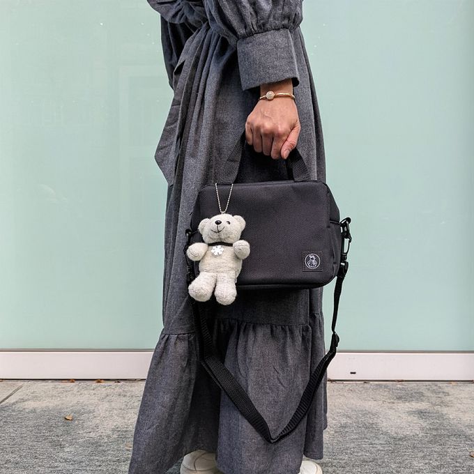 除了便當袋的手提手把外,還有附有一條可調長短的背帶,將背帶扣上便當袋,便當袋立刻變成可提、可側背、可肩背實用小包包!
