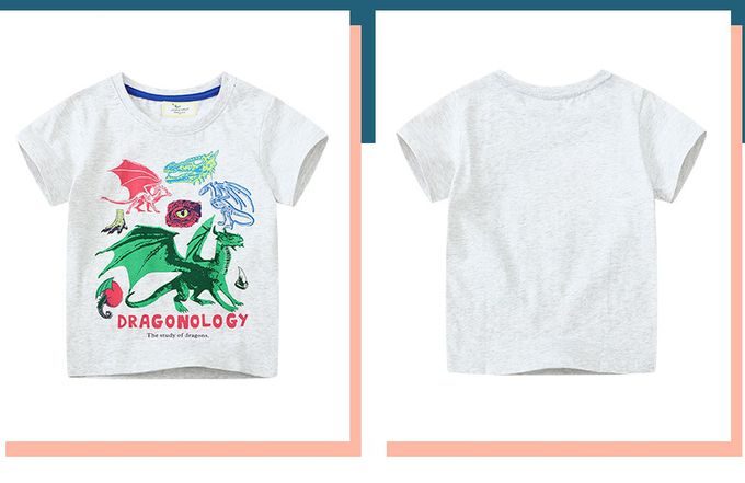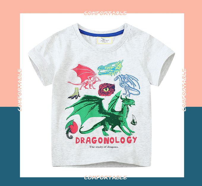 Jumping meters - 棉質圓領短袖上衣-恐龍工程車-白色
