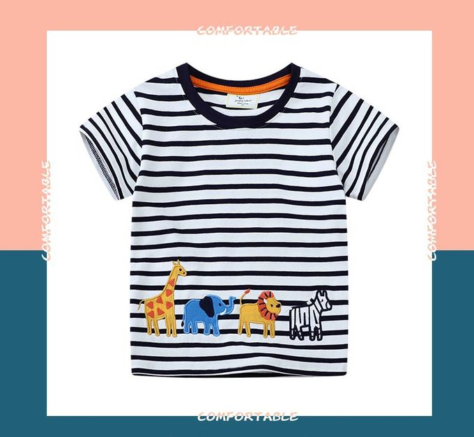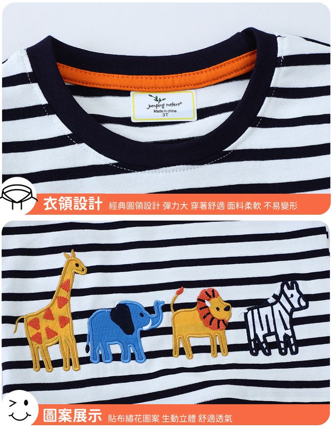 Jumping meters - 棉質圓領短袖上衣-動物排隊中-黑白條紋
