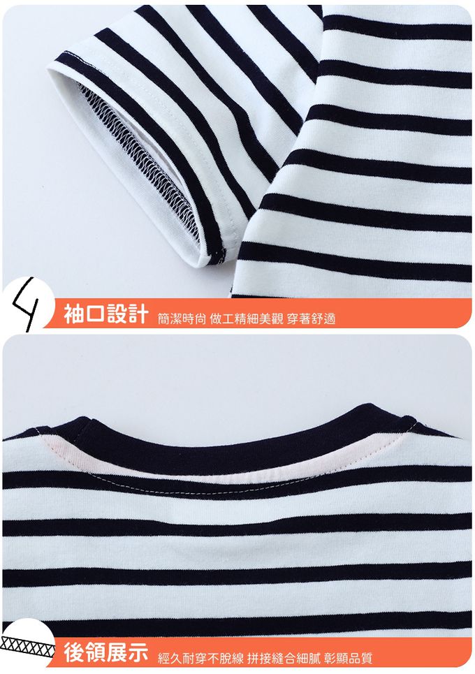 Jumping meters - 棉質圓領短袖上衣-太陽花花-黑白條紋