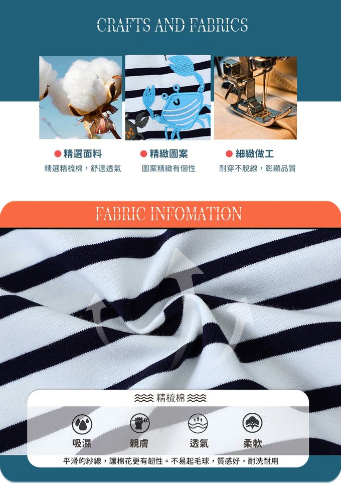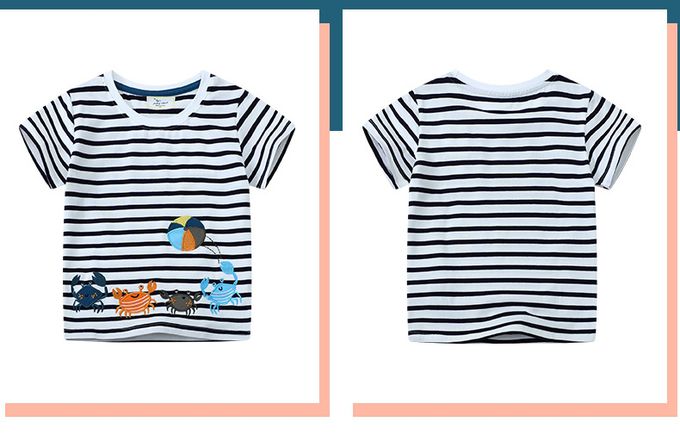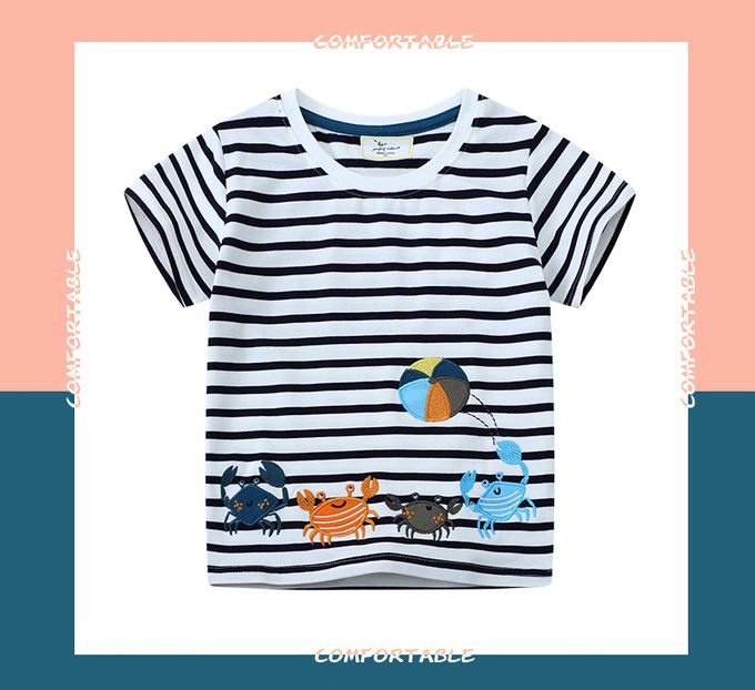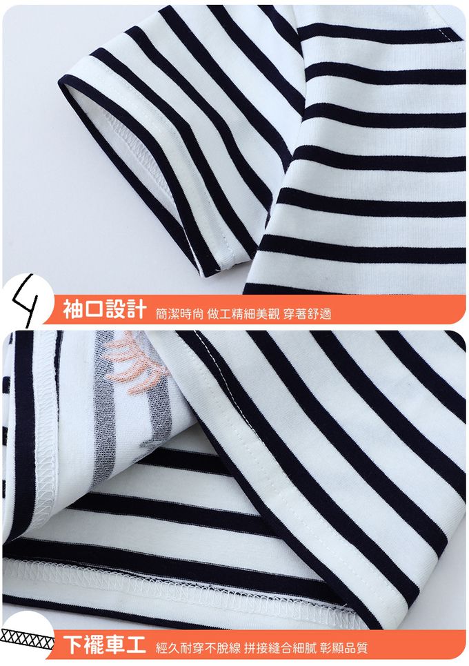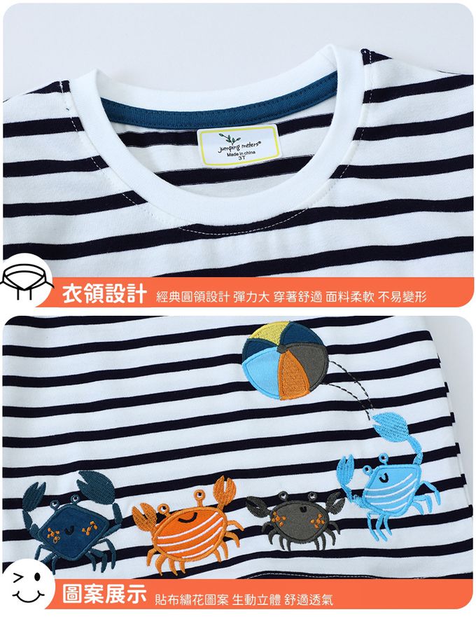 棉質圓領短袖上衣-螃蟹玩球-黑白條紋