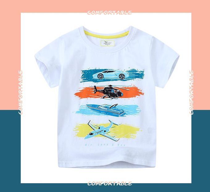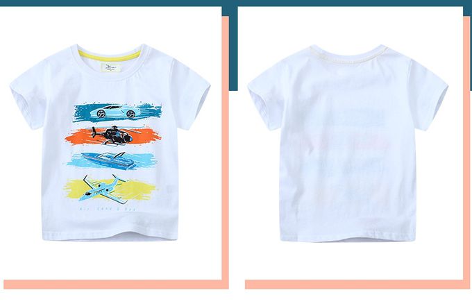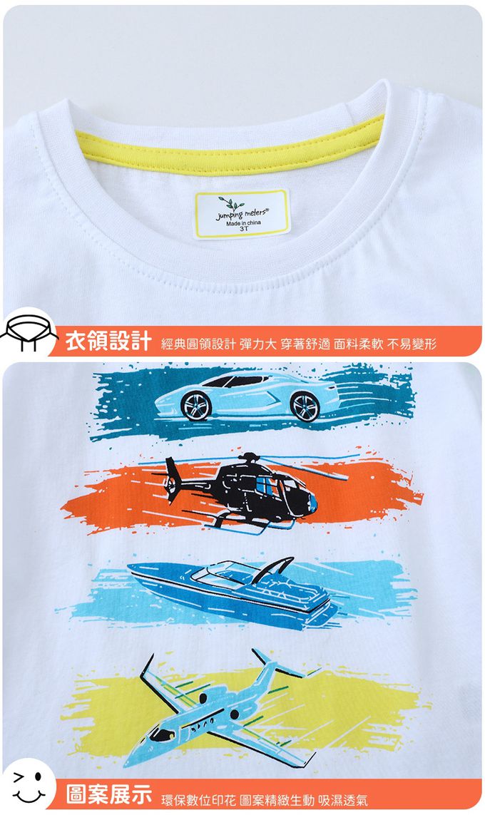 棉質圓領短袖上衣-海陸空交通-米白