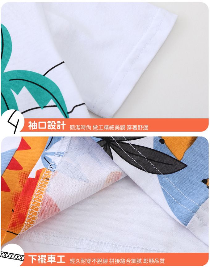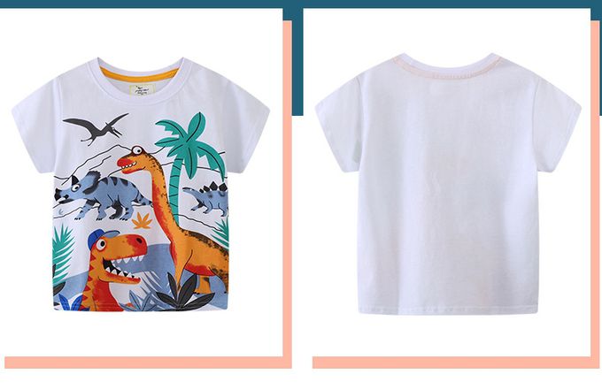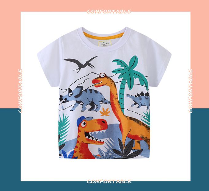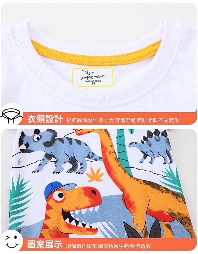 Jumping meters - 棉質圓領短袖上衣-恐龍工程車-白色