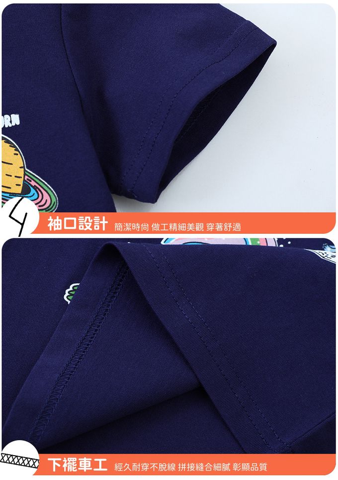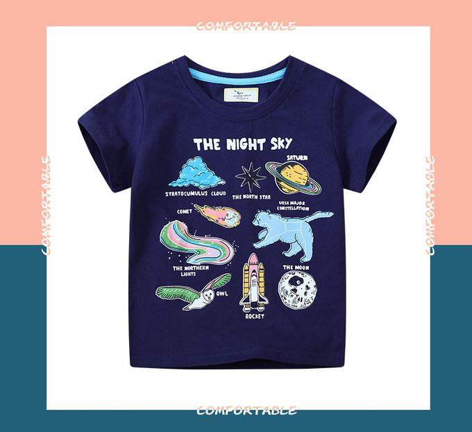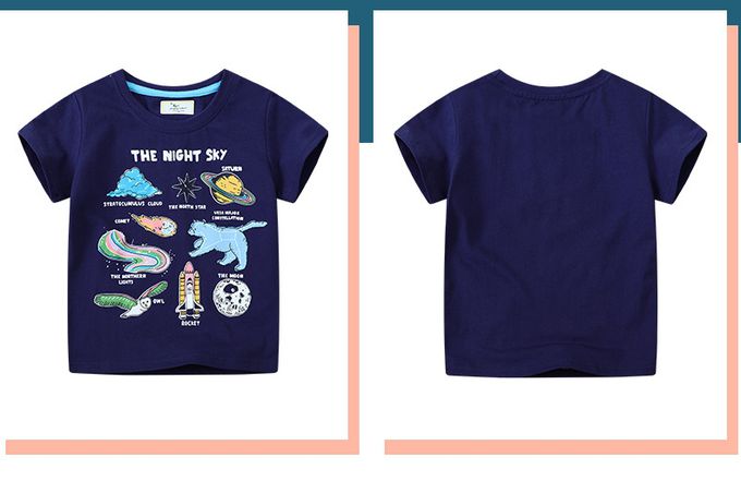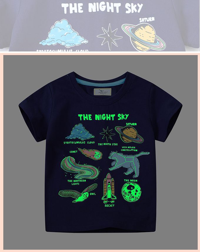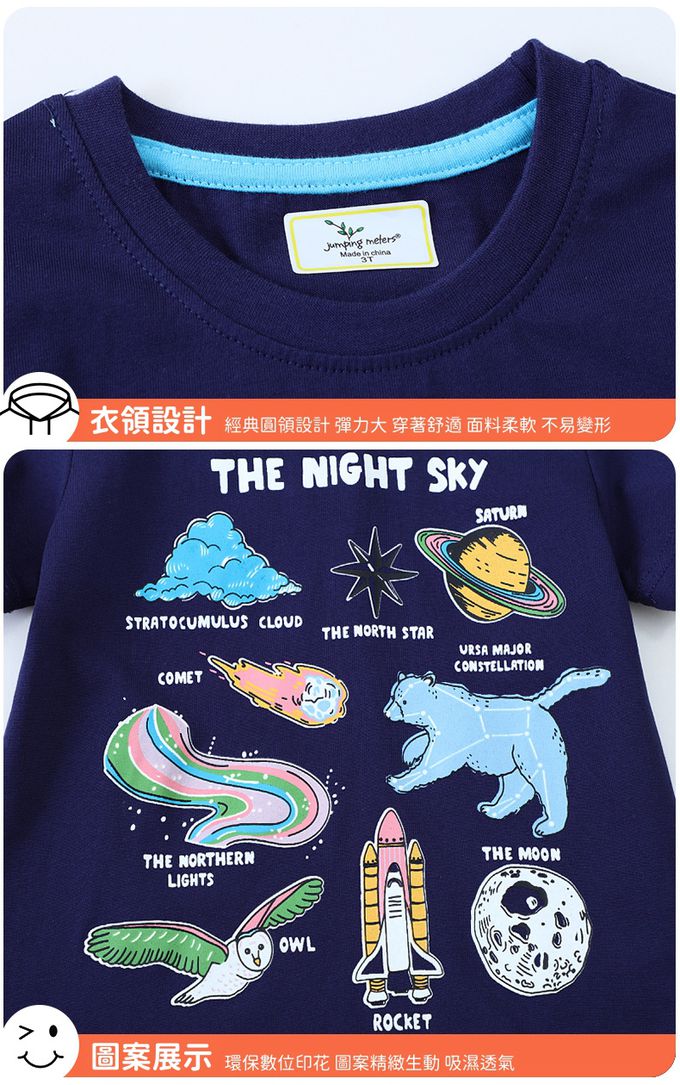 Jumping meters - 夜光圓領短袖上衣-太空飛行-深藍色