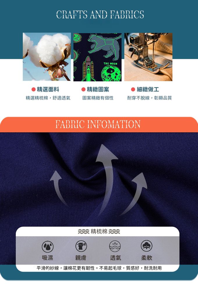 注意事項:1.此夜光圖案採用環保夜光粉印刷而成,洗滌多次後夜光效果減弱屬正常現象。 2.清洗夜光系列衣服時,請用40度以下的水溫清洗,不可用內含漂白劑的洗滌劑清洗,避免用手搓圖案的表面,請將衣物翻面放入洗衣袋清洗,晾曬時請將衣物翻面,不可讓夜光圖正面曝曬在陽光下。 3.若要熨燙衣物,晾乾後將衣物反面使用中溫熨燙,不可直接於夜光圖正面熨燙。