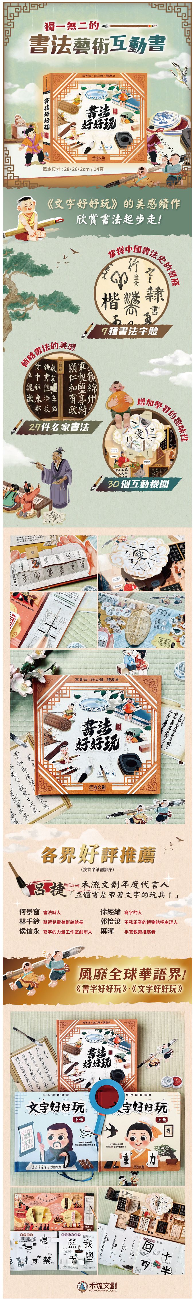 書中多達30個互動遊戲機關,包含翻翻頁、立體頁、轉轉齒輪等,讓孩子一邊學習書法的相關知識、一邊動手操作,不但增添趣味性,也加深學習印象!