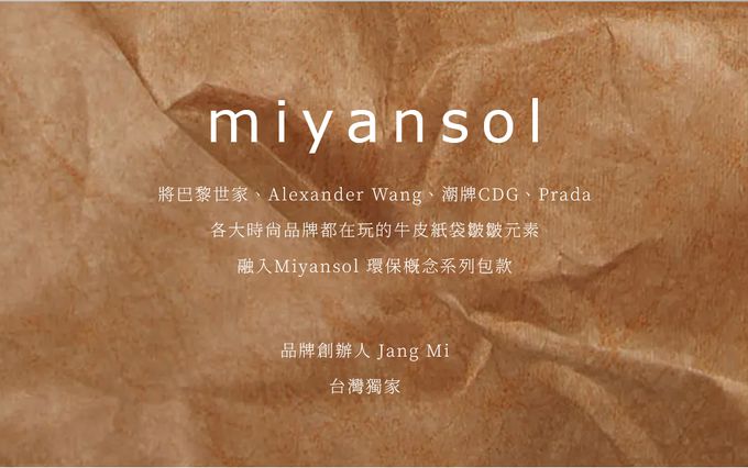 各大時尚品牌都在玩的牛皮紙袋皺皺元素,融入𝗠𝗶𝘆𝗮𝗻𝘀𝗼𝗹 環保概念系列包款 !