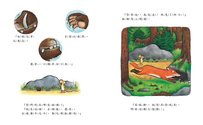 ★全球最暢銷且饒富寓意的經典故事之一,譽為經典必讀繪本,故事靈感來自中國傳統故事〈狐假虎威〉,被改編成動畫、舞台劇、有聲書等,陪伴大小朋友成長,用最好玩的故事,告訴孩子如何發揮機智解決問題;用童謠一樣的文字,教會孩子如何化險為夷。