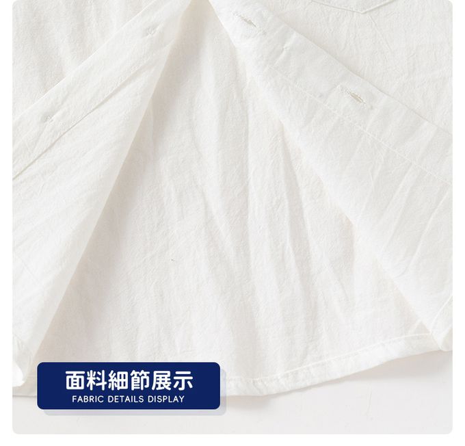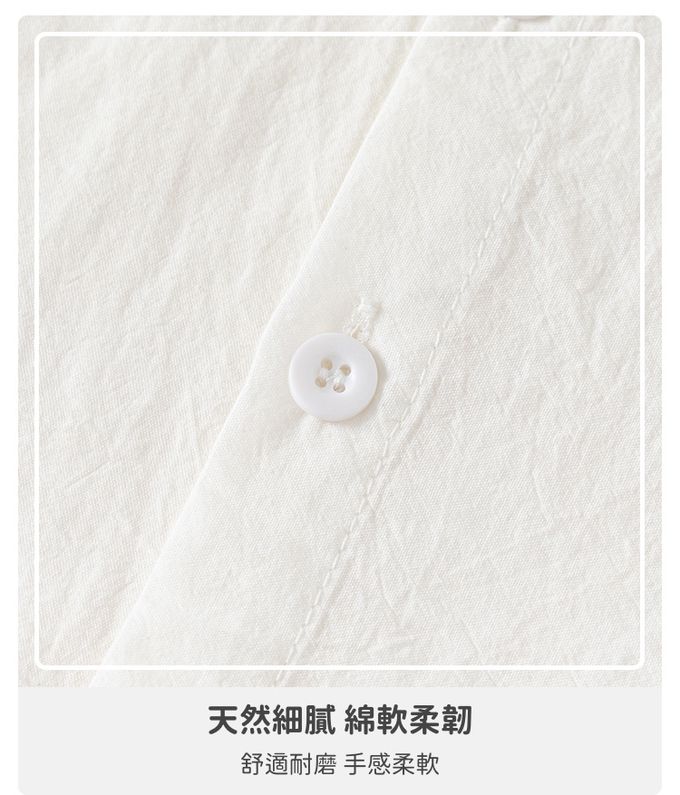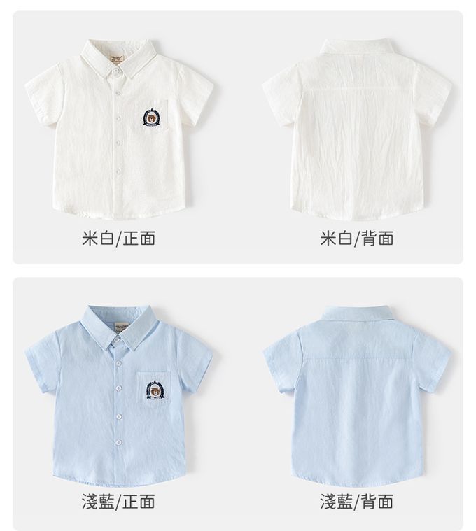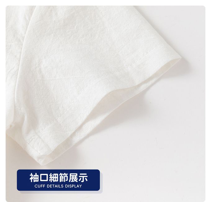 純棉休閒翻領短袖襯衫-熊熊刺繡徽章-米白