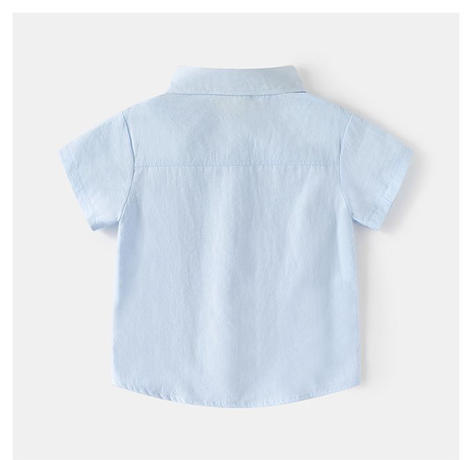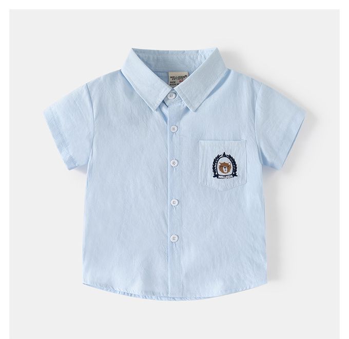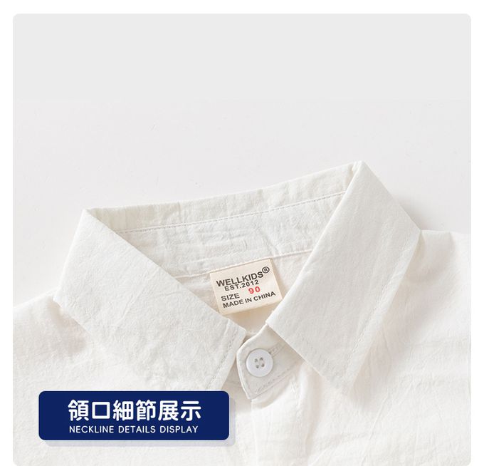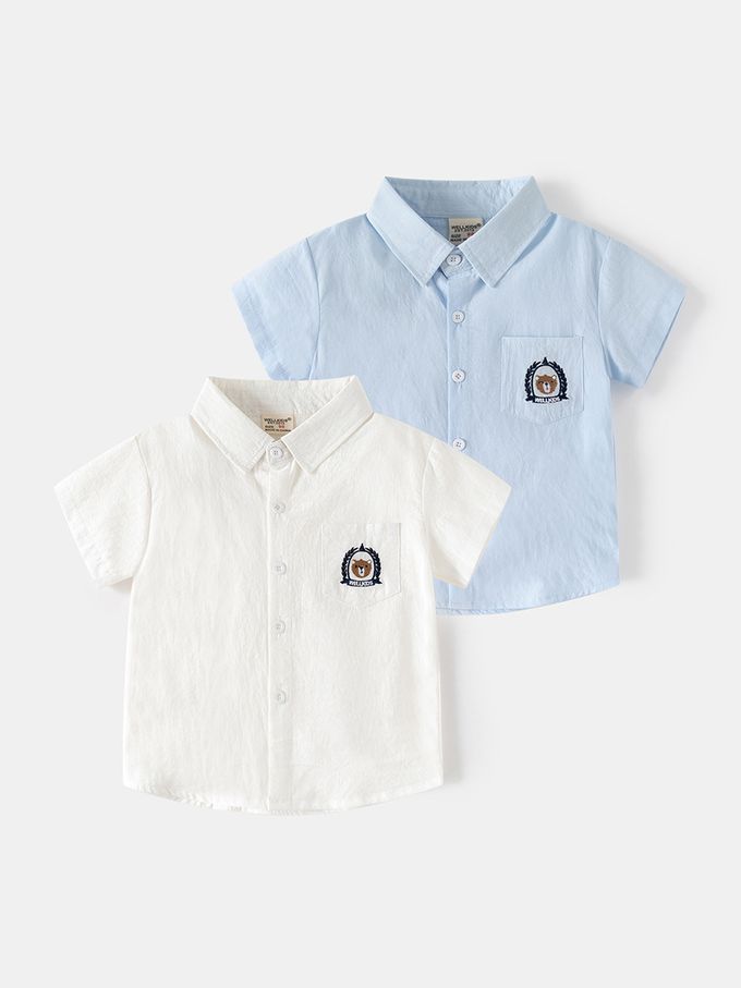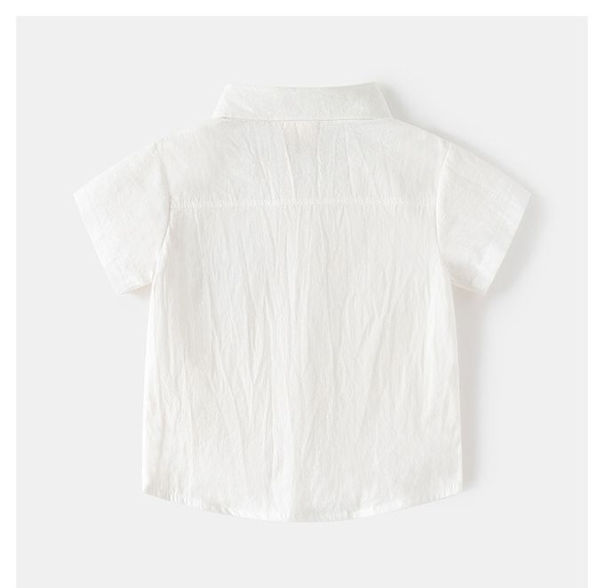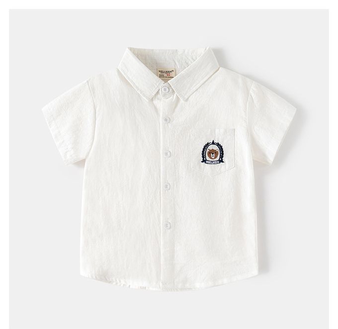 WELLKIDS - 純棉休閒翻領短袖襯衫-小熊領帶-白色