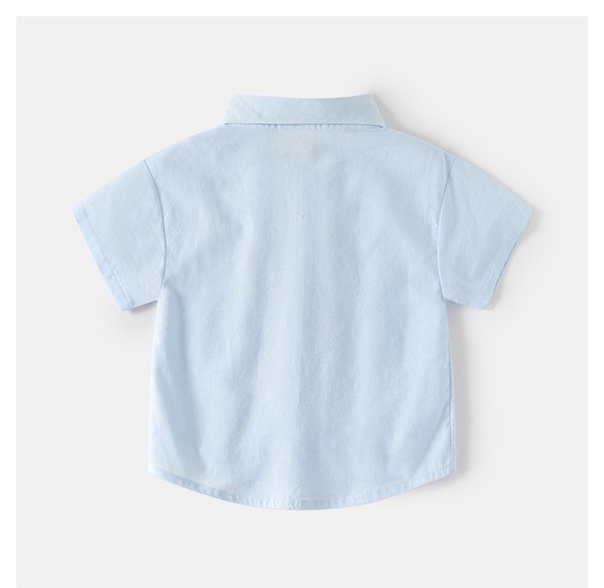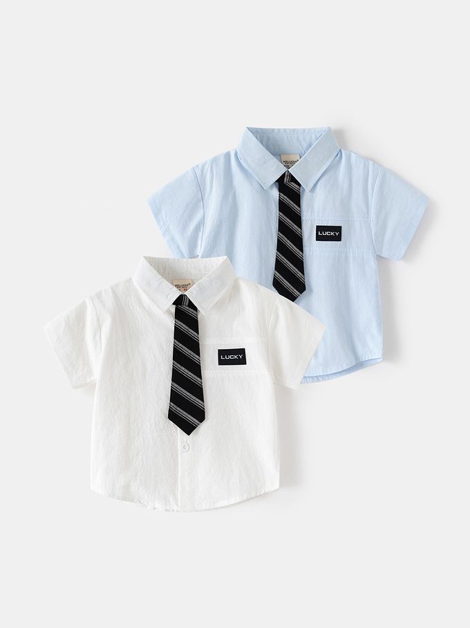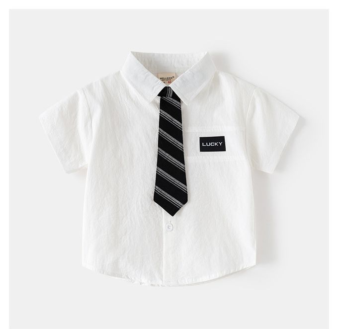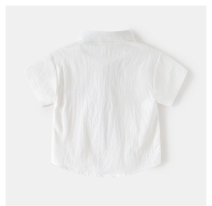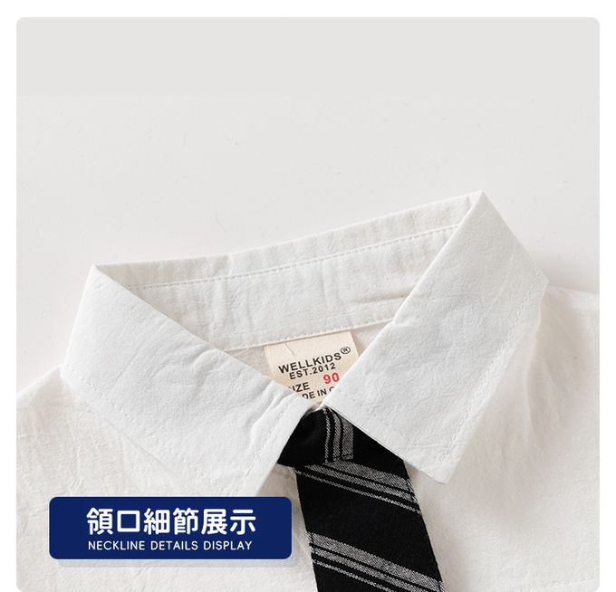 WELLKIDS - 純棉休閒翻領短袖襯衫-小熊領帶-白色