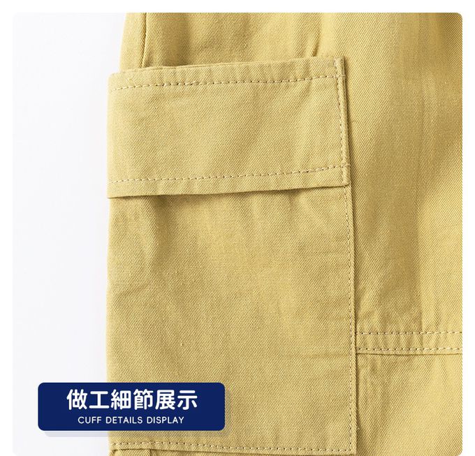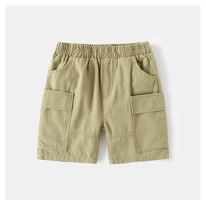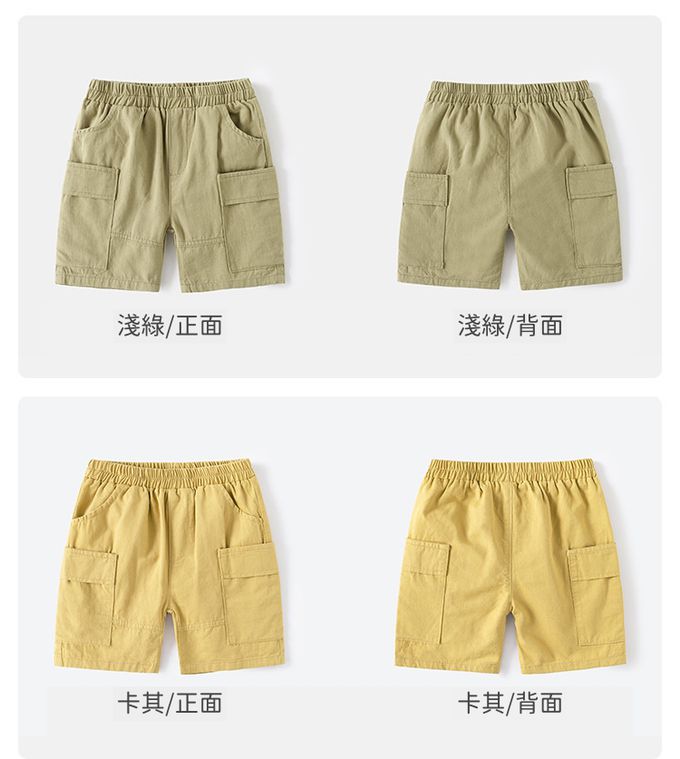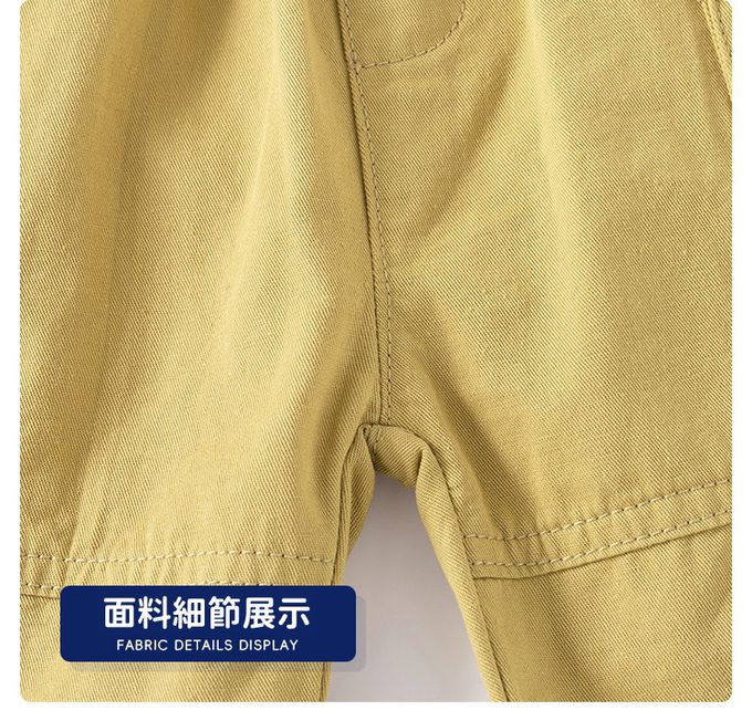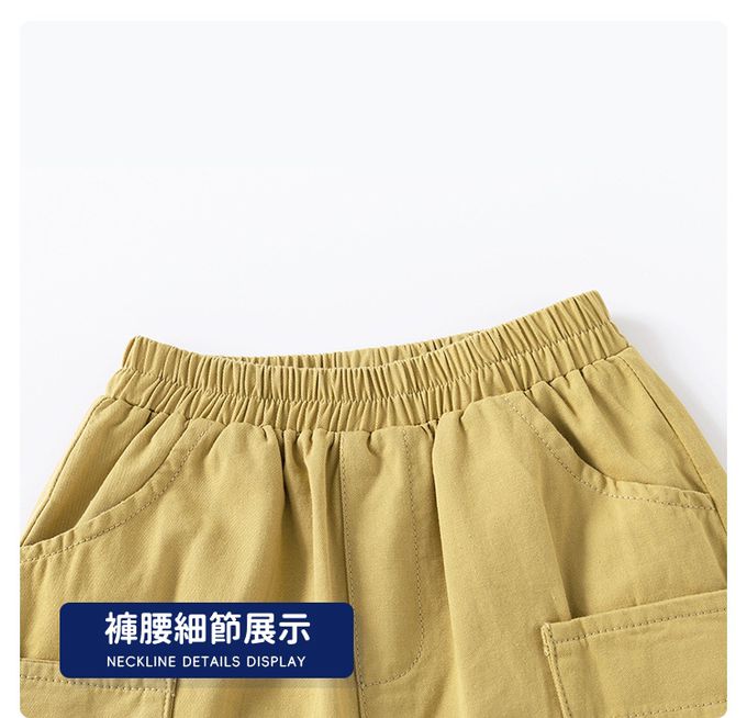 WELLKIDS - 純棉腰鬆緊休閒五分褲-扣子口袋-卡其
