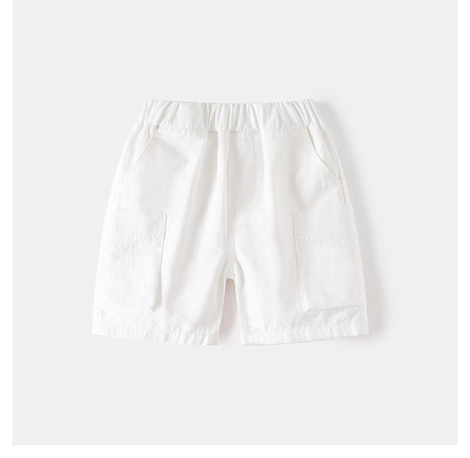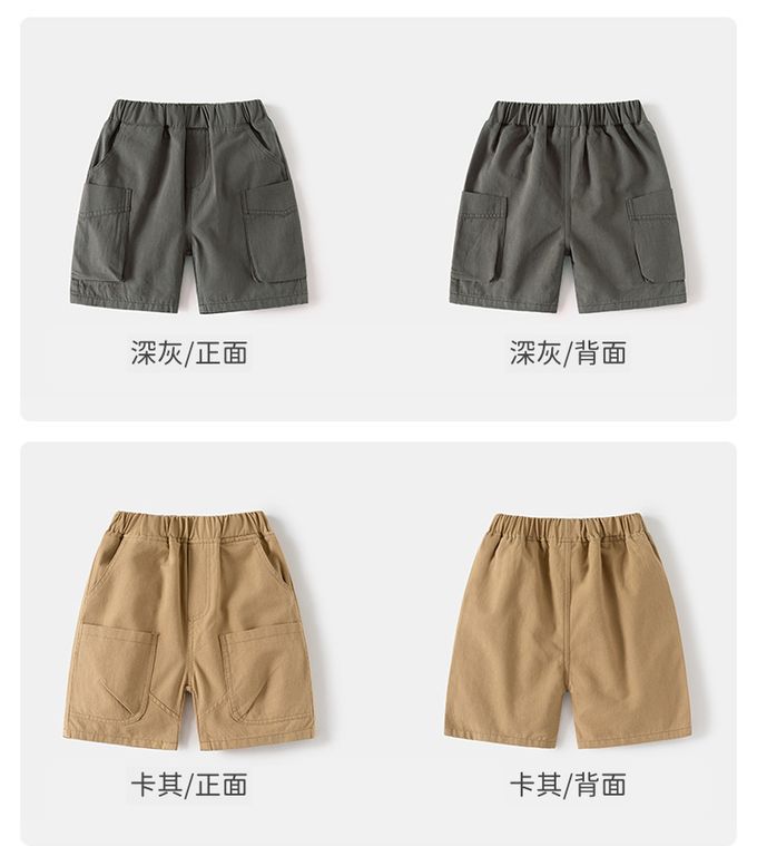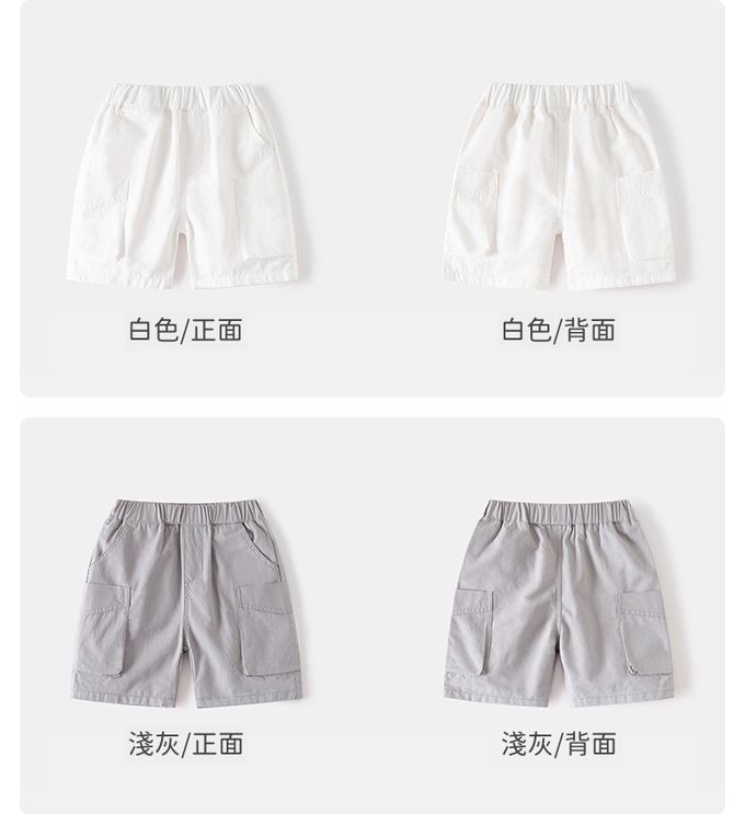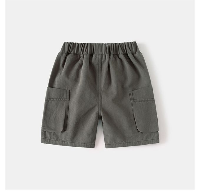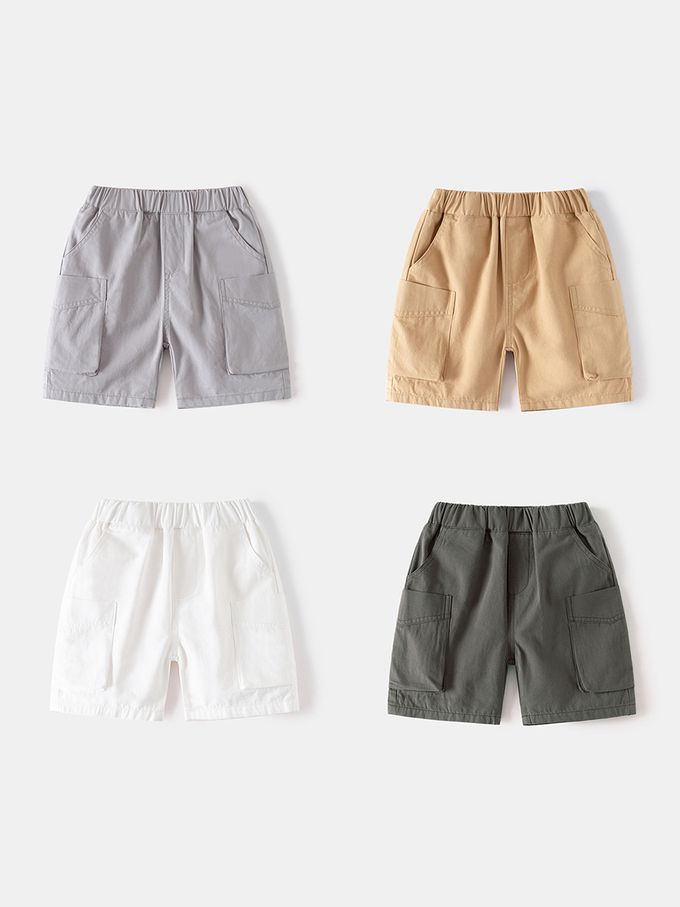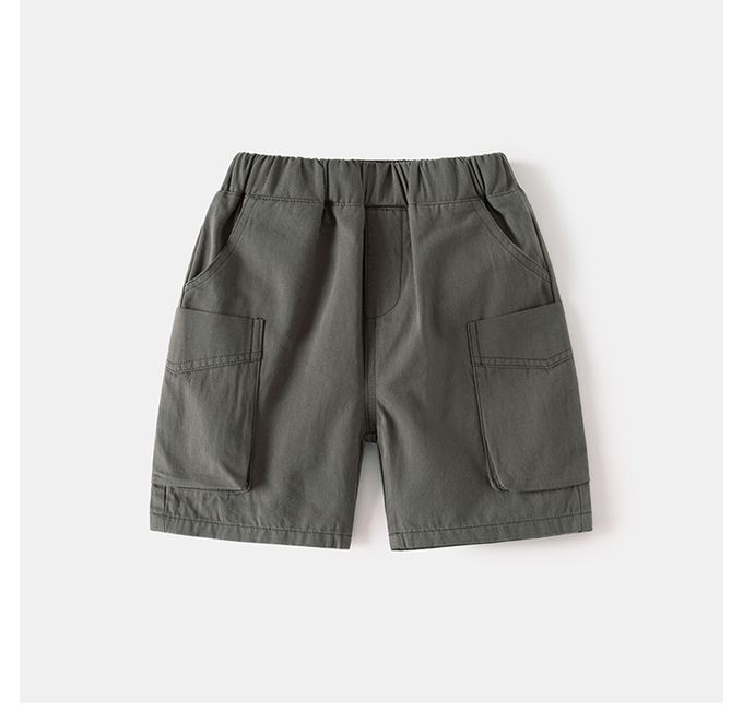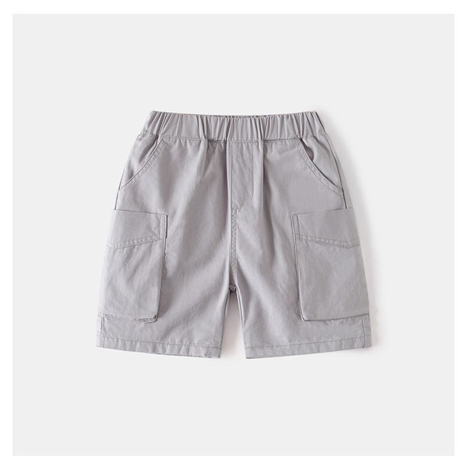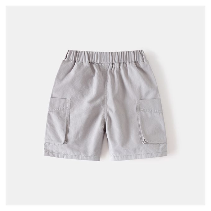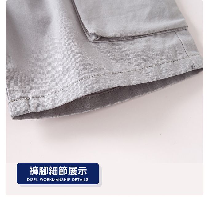 WELLKIDS - 純棉腰鬆緊休閒五分褲-雙口袋-淺灰