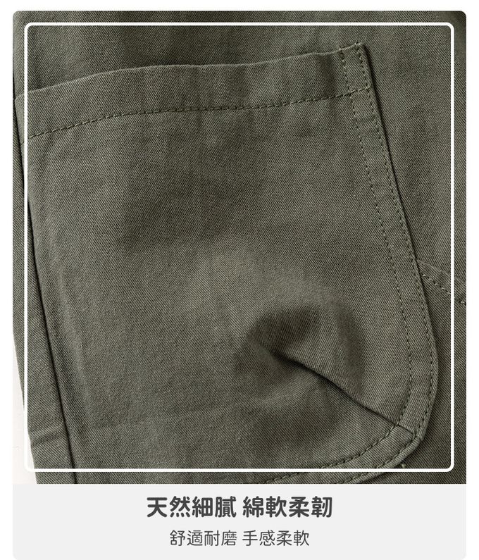 純棉腰鬆緊休閒五分褲-雙口袋-卡其