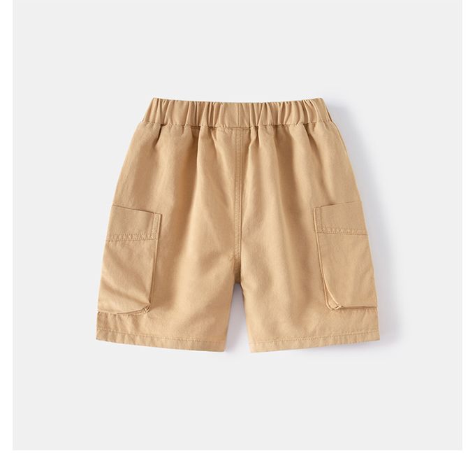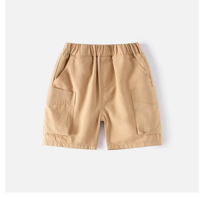 WELLKIDS - 純棉腰鬆緊休閒五分褲-扣子口袋-卡其