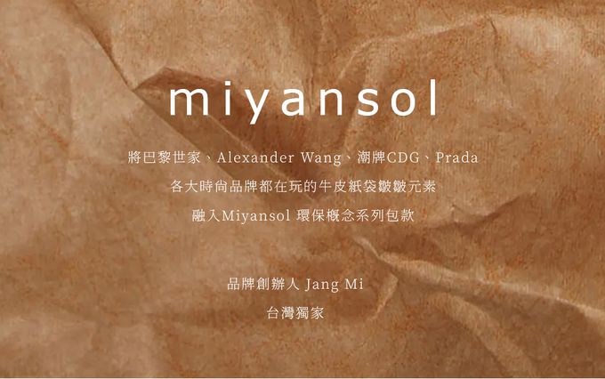 各大時尚品牌都在玩的牛皮紙袋皺皺元素,融入𝗠𝗶𝘆𝗮𝗻𝘀𝗼𝗹 環保概念系列包款 !