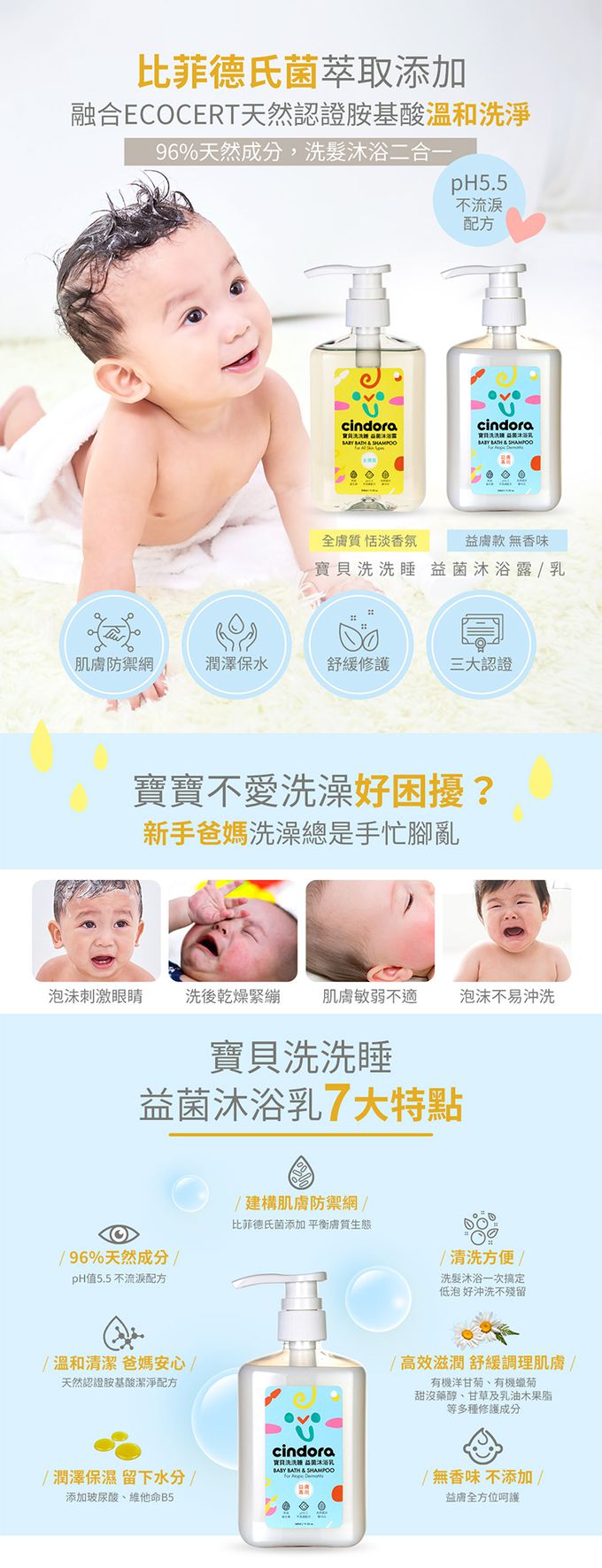 pH5.5不流淚配方,洗頭洗澡雙效合一。
