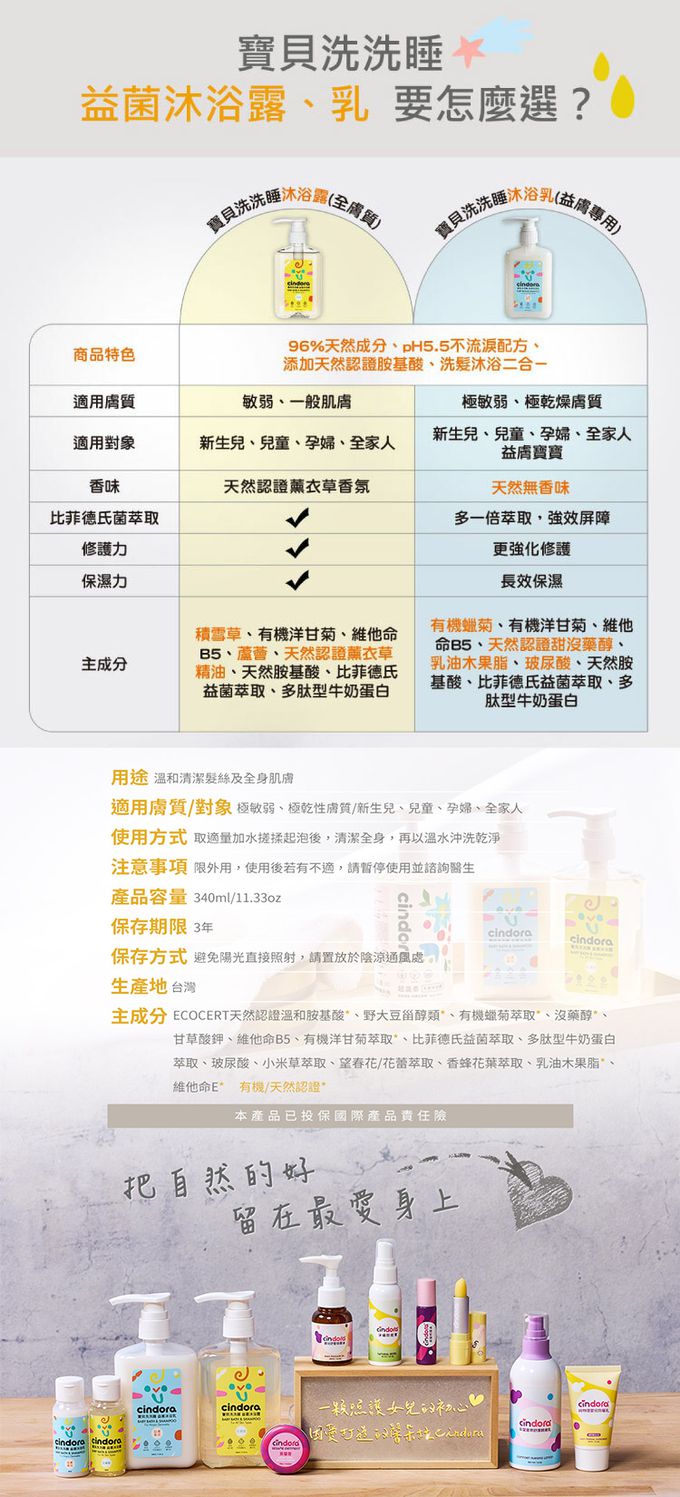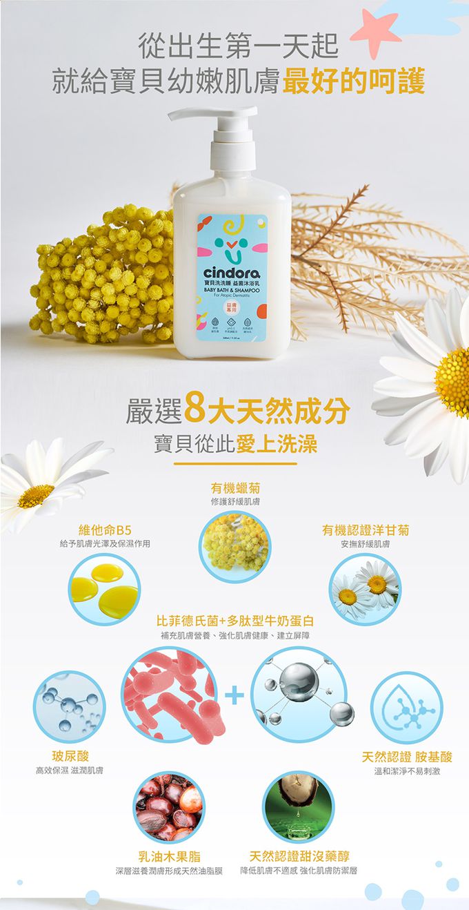 Cindora 馨朵拉 寶寶洗洗睡 益菌沐浴乳340ml