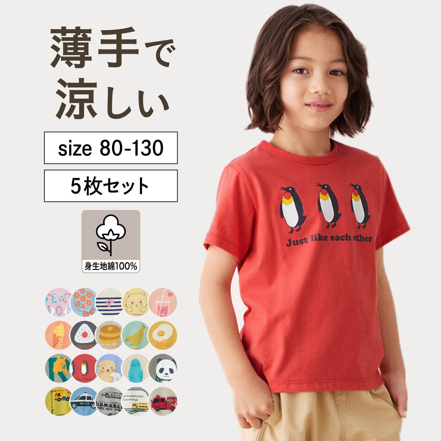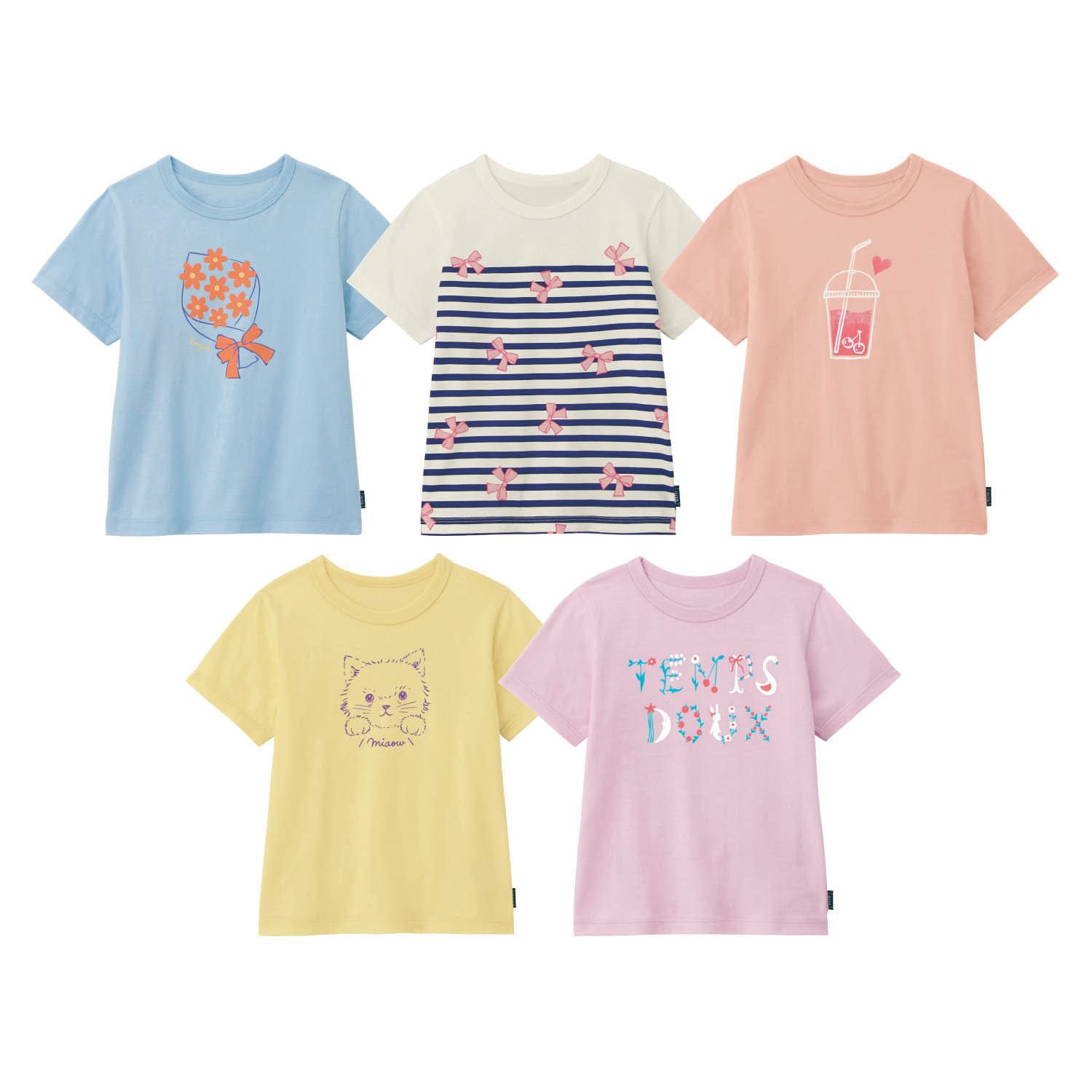 日本千趣會 - GITA 涼爽短袖超值五件組-女孩印花-粉黃藍系