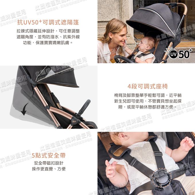 Goody Primo魔術瞬收手推車+Unico Plus 0123 Isofix安全汽座Air版-Goody Primo璀璨金+Unico Plus曜石黑