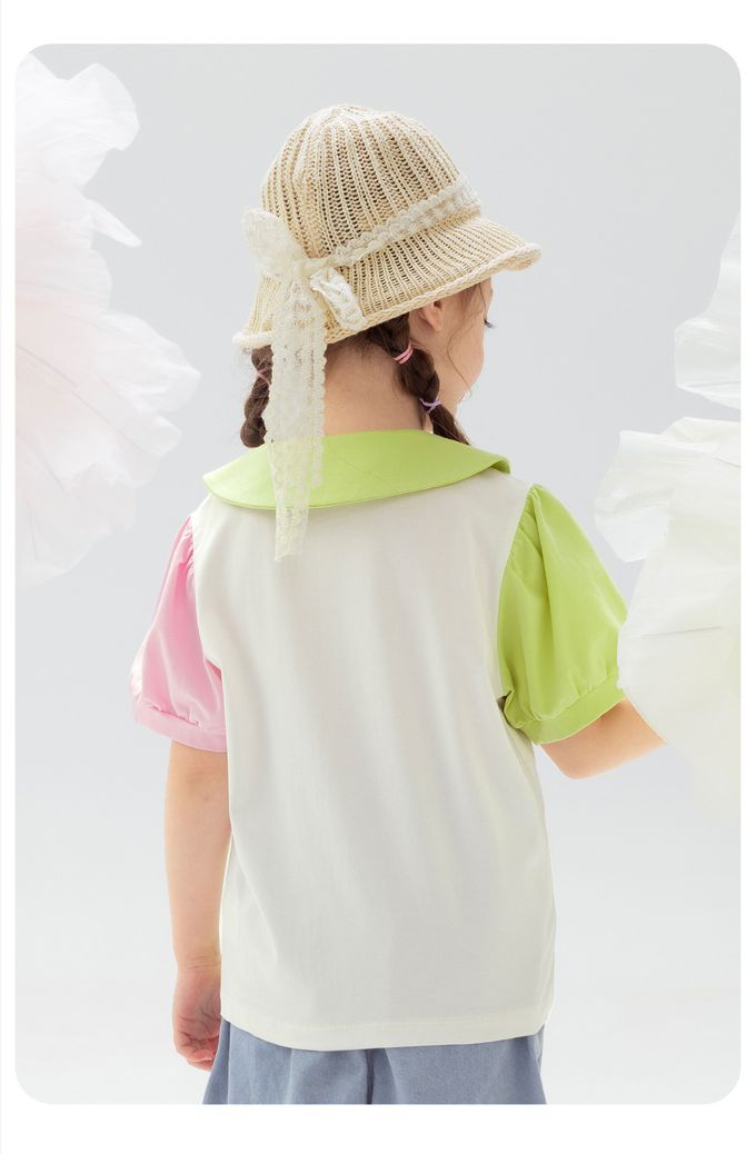 卡通汪汪隊撞色娃娃領短袖上衣-卡通人物天天-米白