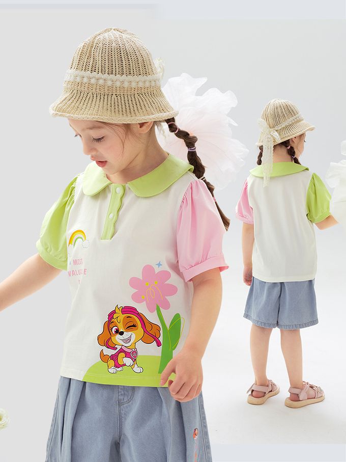 品名:卡通汪汪隊撞色娃娃領短袖上衣