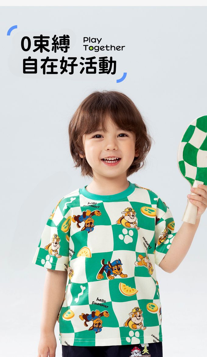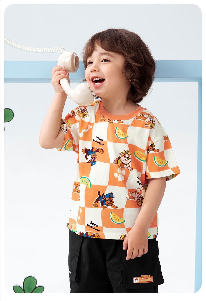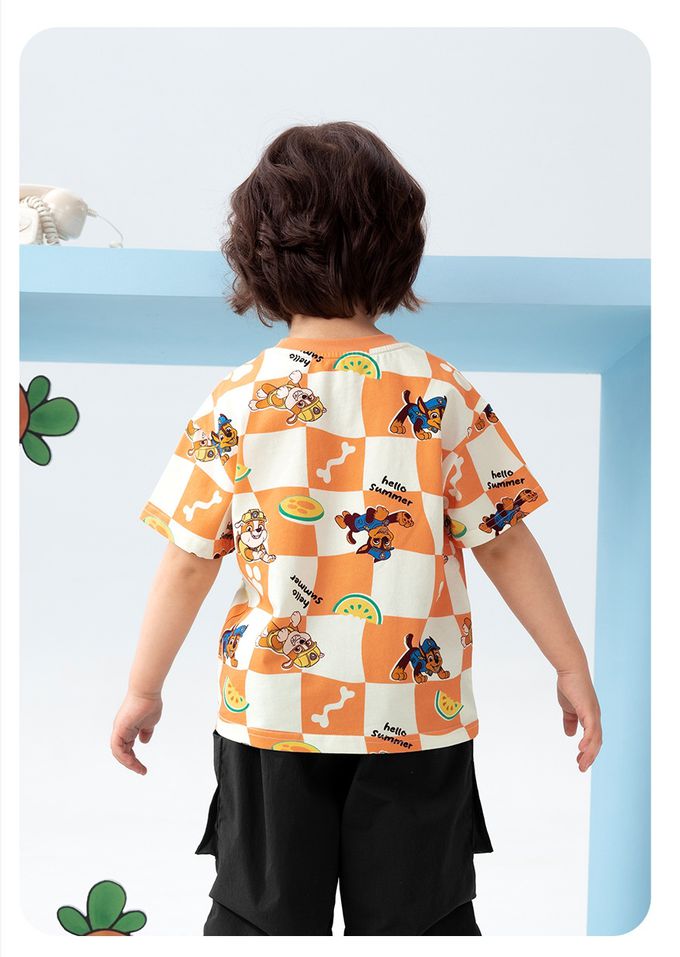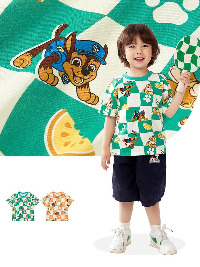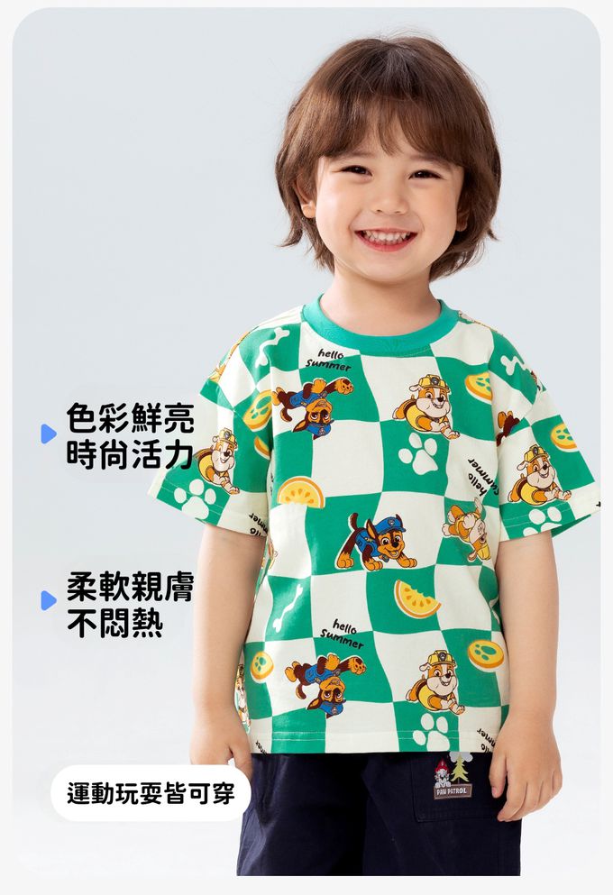 品名:卡通汪汪隊純棉格子印花圓領短袖上衣