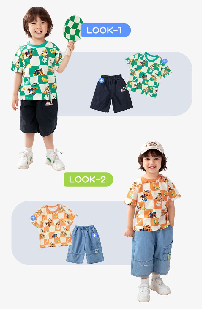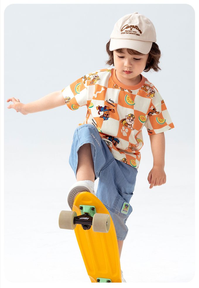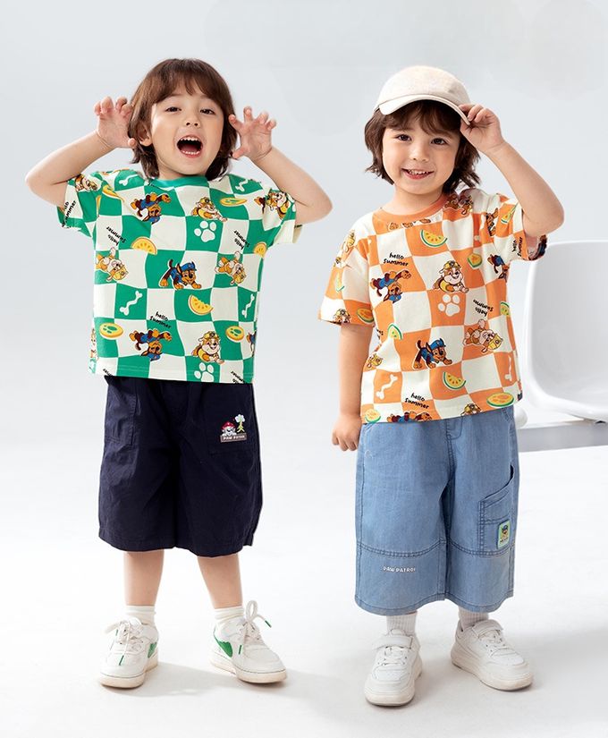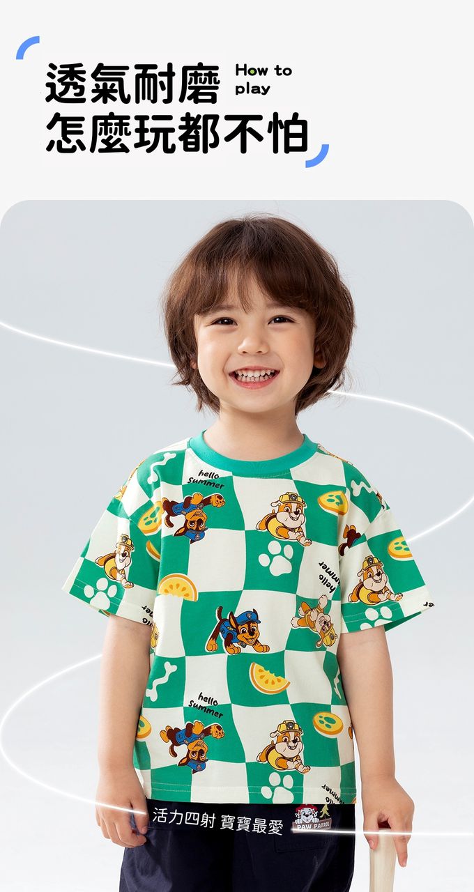 品名:卡通汪汪隊純棉格子印花圓領短袖上衣