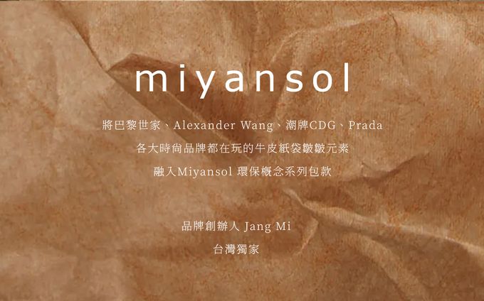 各大時尚品牌都在玩的牛皮紙袋皺皺元素,融入𝗠𝗶𝘆𝗮𝗻𝘀𝗼𝗹 環保概念系列包款 !