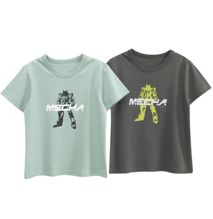 純棉短袖上衣-機器人-深灰