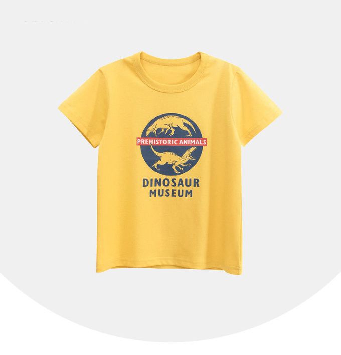 27KIDS - 純棉短袖上衣-長鼻子大象-卡其色