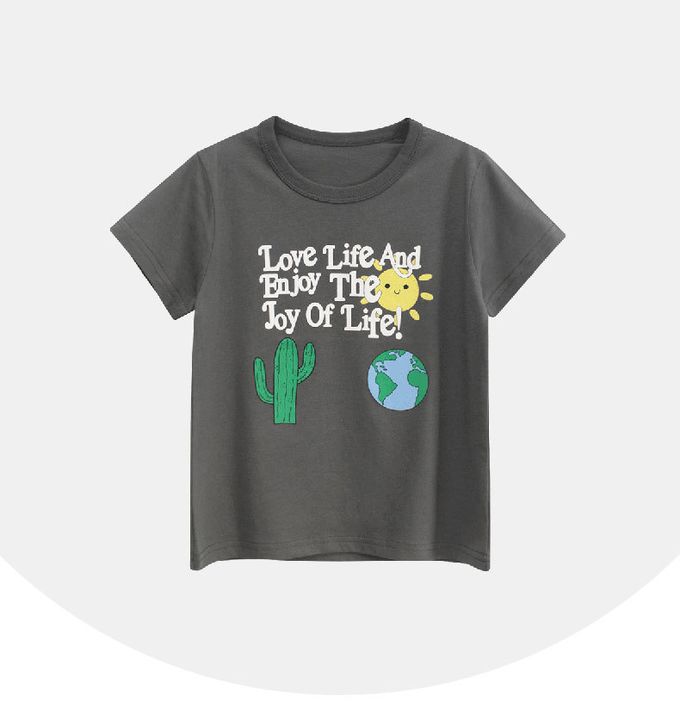 純棉短袖上衣-享受人生-深灰