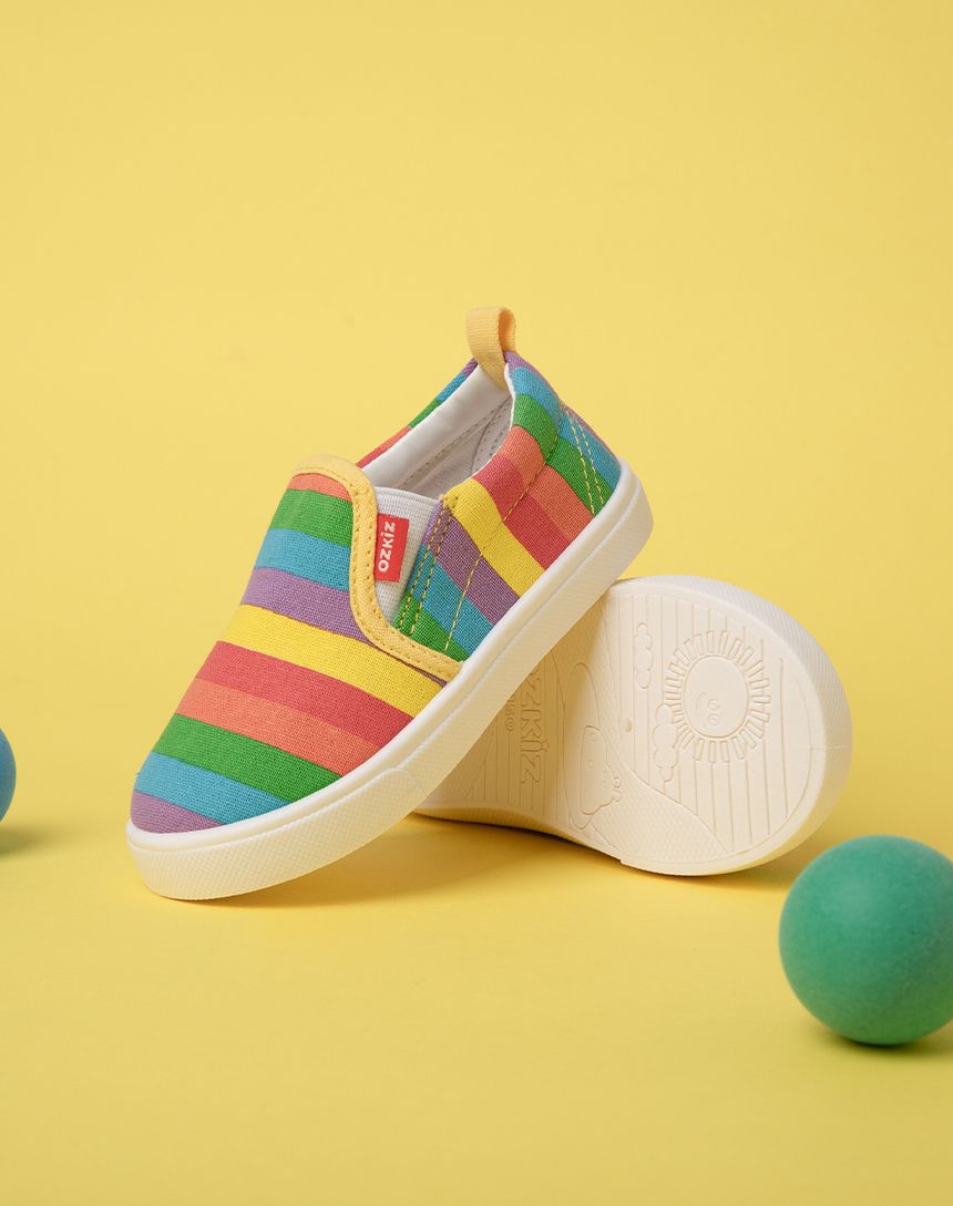 韓國 OZKIZ - 寶貝最愛塗鴉懶人休閒鞋/室內鞋-彩虹