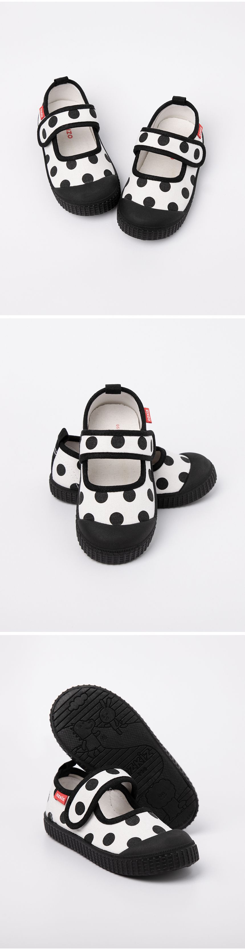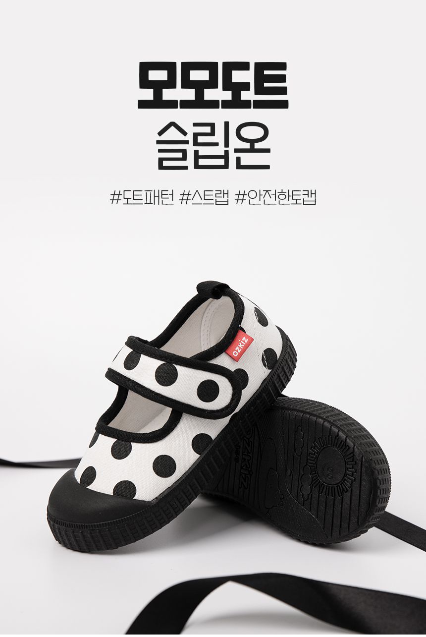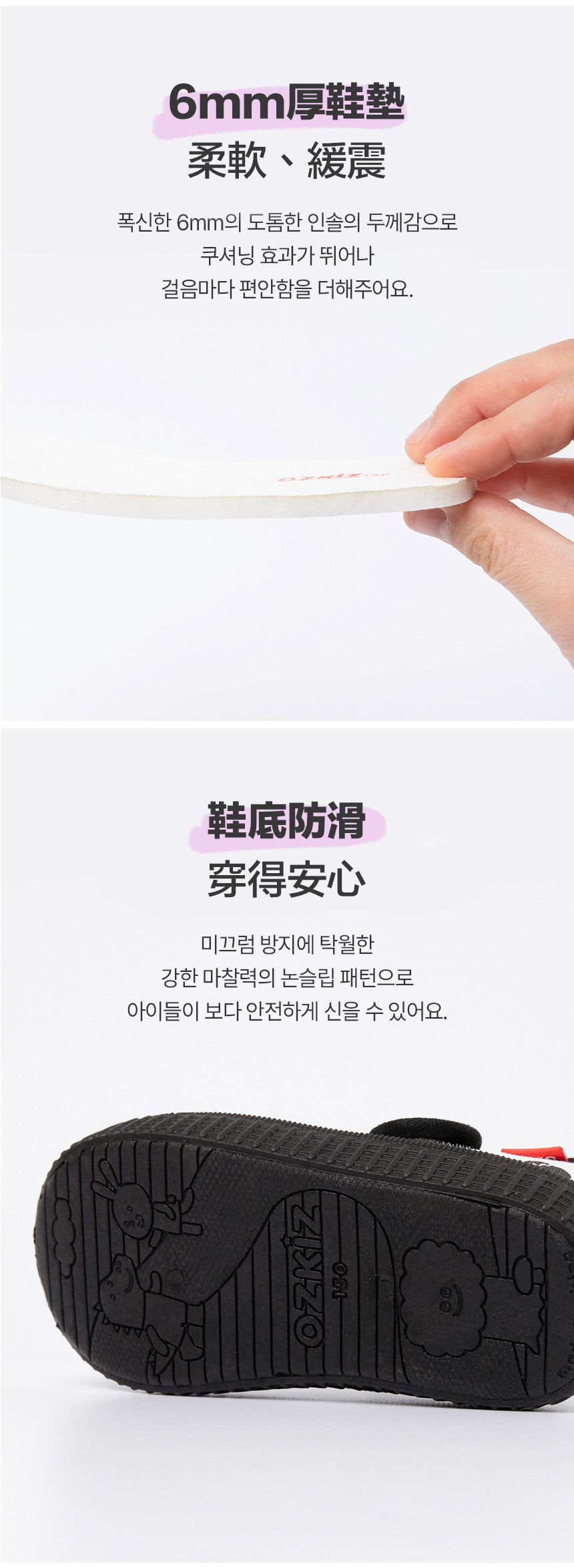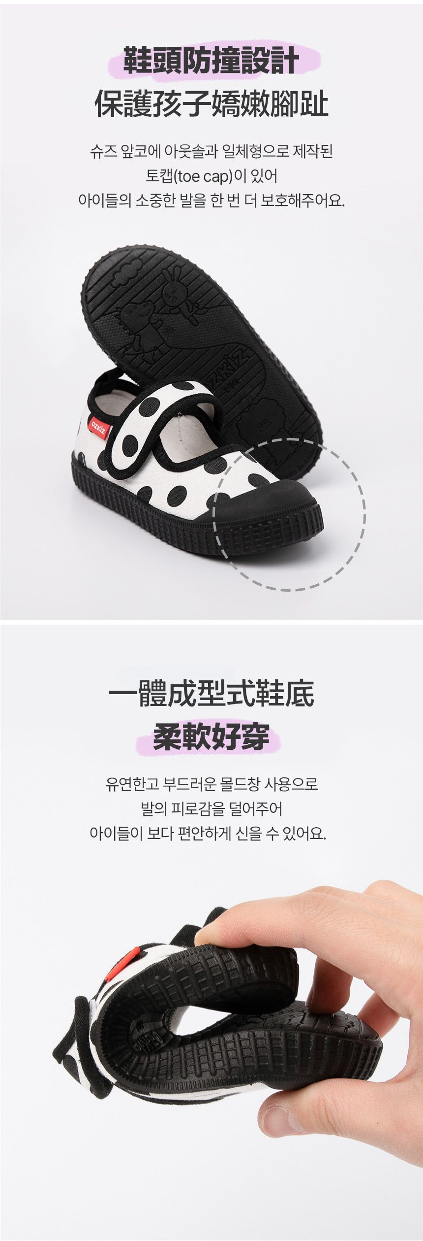 韓國 OZKIZ - 點點腳趾保護防滑休閒鞋/室內鞋-黑X白