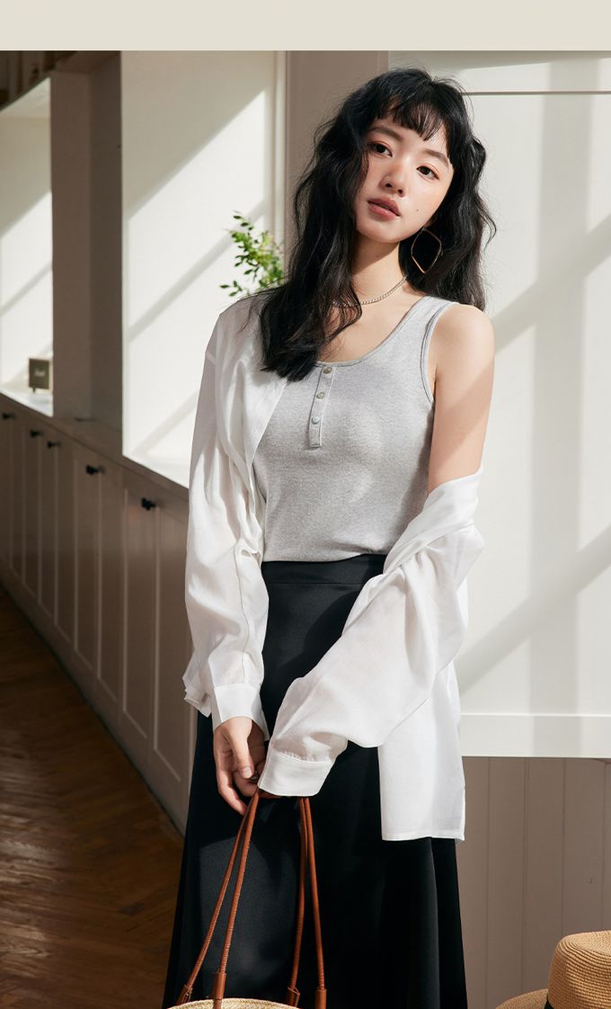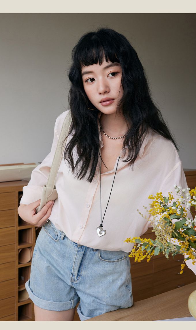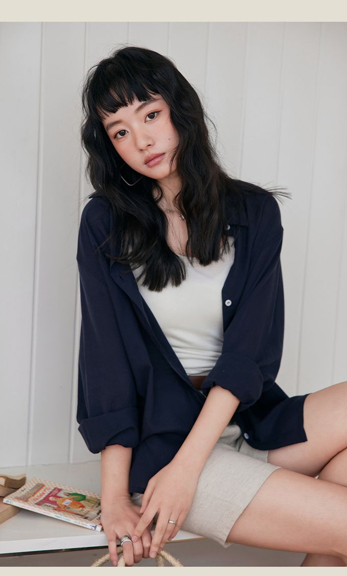 天絲亞麻微落肩防曬襯衫-深樺藍