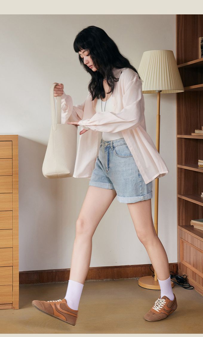 KPUWARM - 天絲亞麻微落肩防曬襯衫-深樺藍