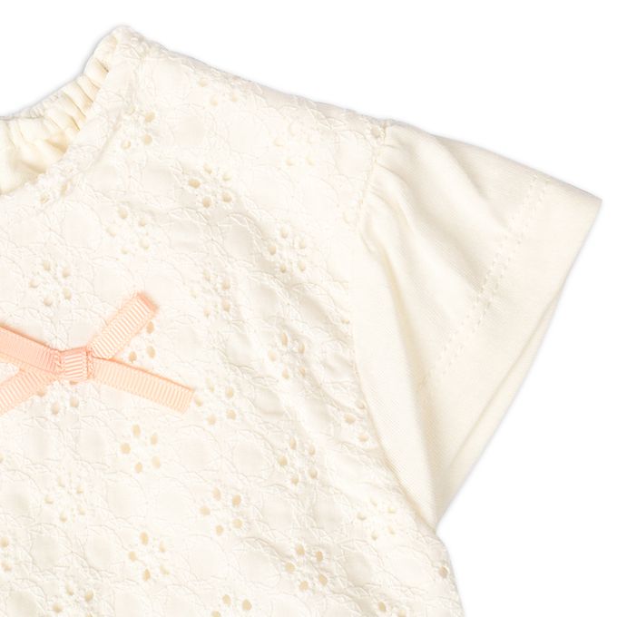 akachan honpo - 短袖蕾絲拼接洋裝-粉紅色