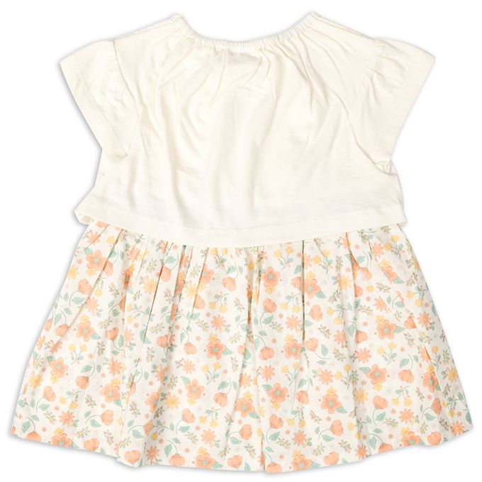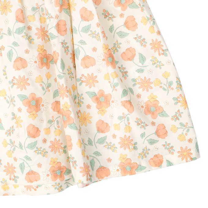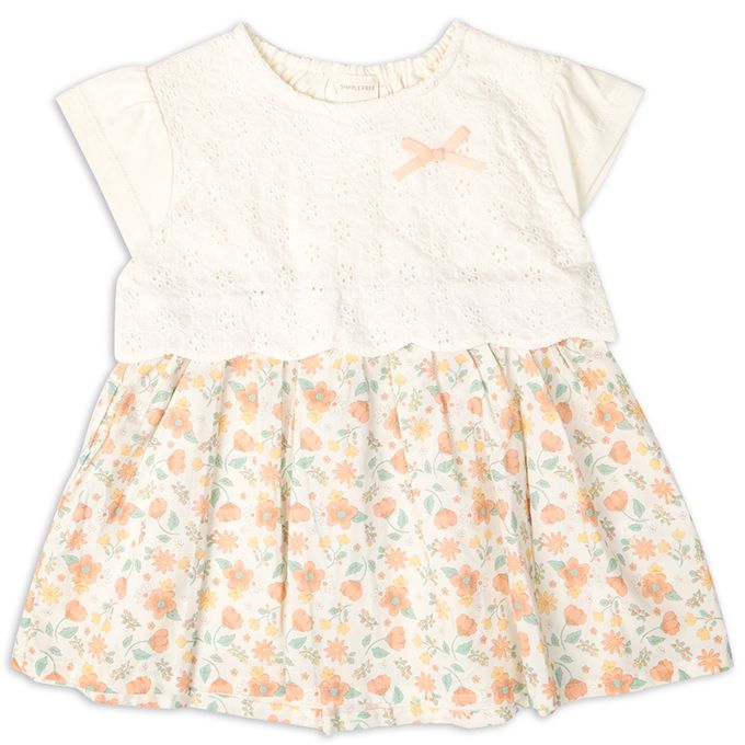 • 裙子上溫柔小花圖案也很亮眼的拼接設計洋裝