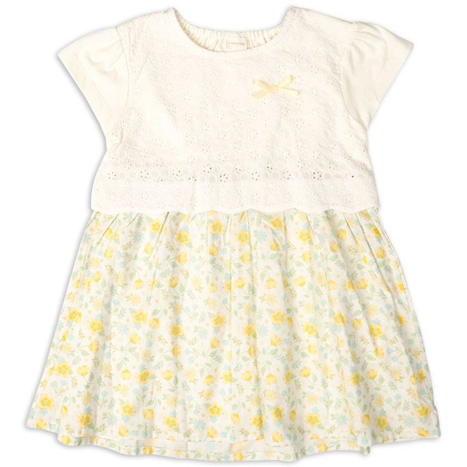 akachan honpo - 短袖蕾絲拼接洋裝-黃色